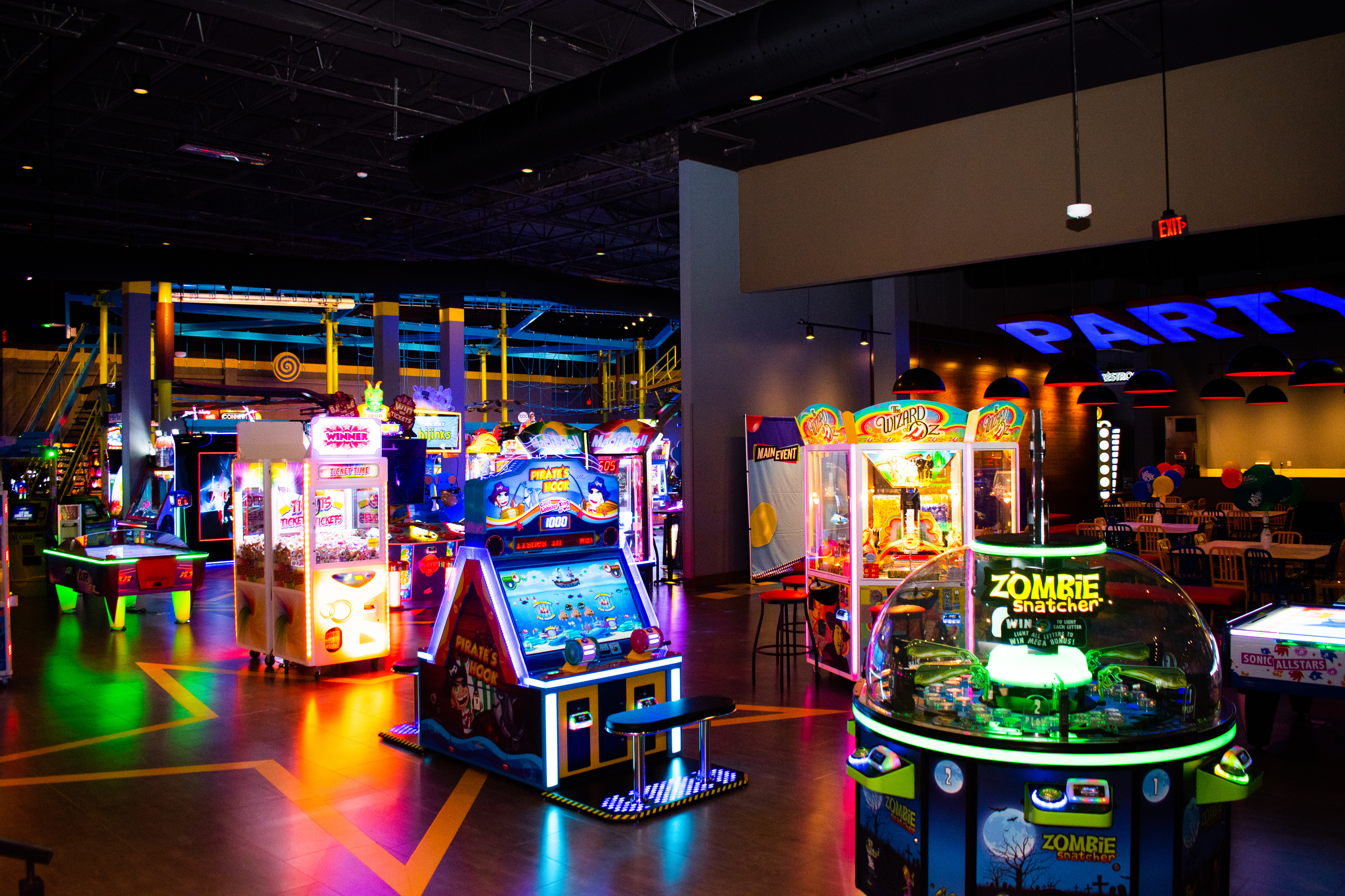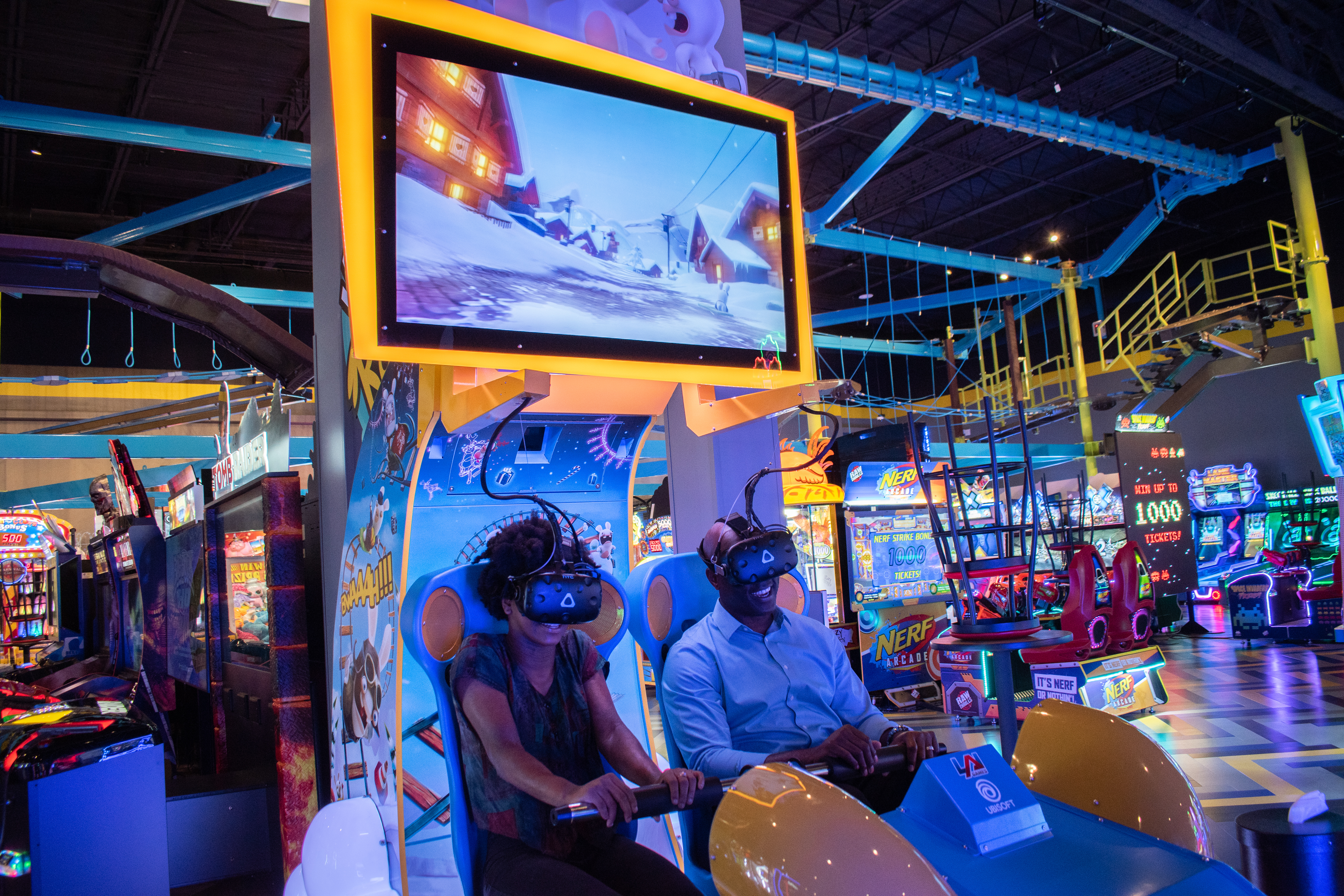 The 50,000 square-foot entertainment center also has classic arcade games like Pac-Man and skee ball and virtual reality games such as Beat Saber and Virtual Rabbids. Above the arcade, players can feel like they’re in an episode of Ninja Warrior while attempting to complete the Gravity Ropes, a 15-foot high obstacle course that includes a 20 foot high zip lining finish.