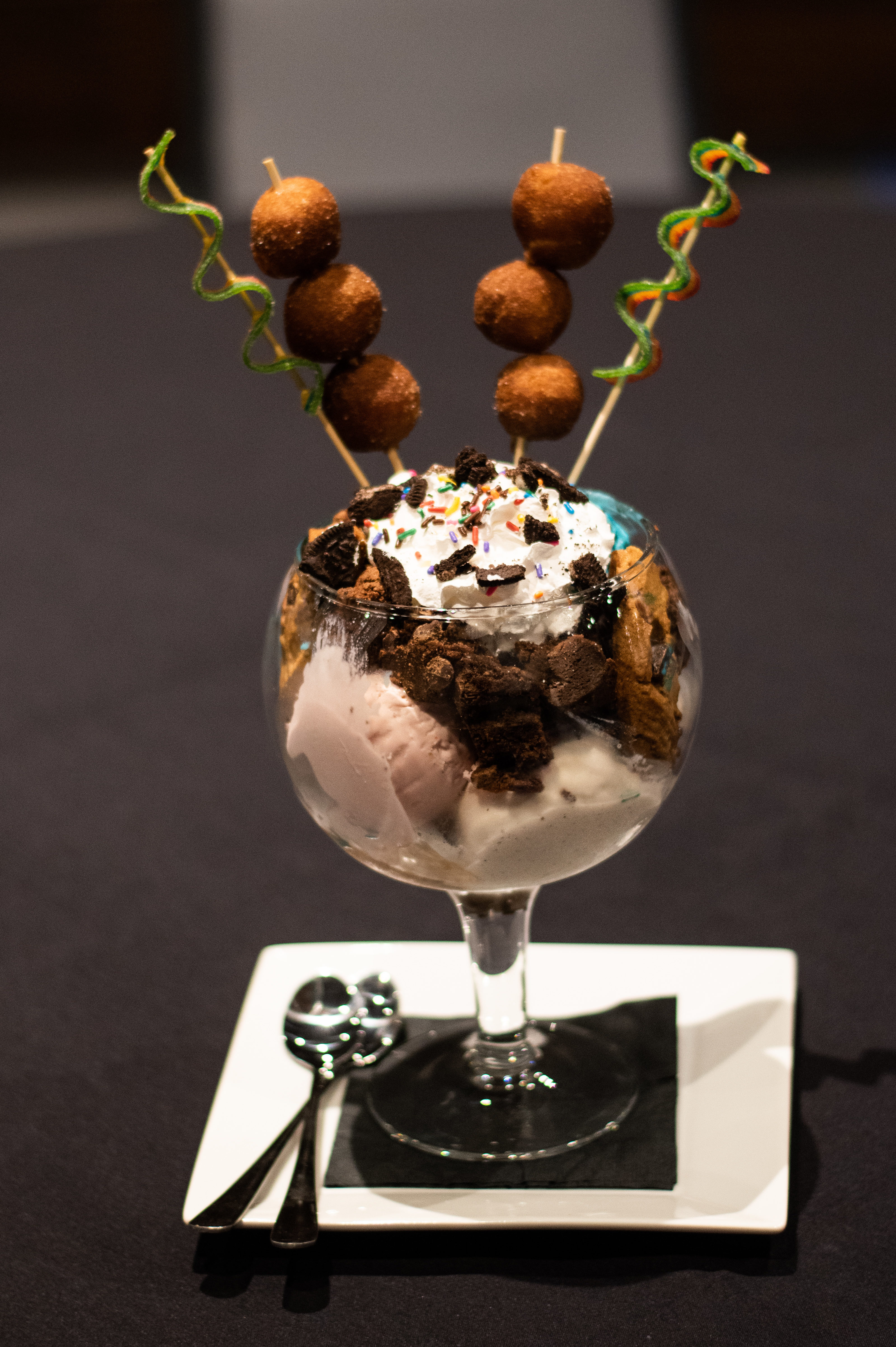 For dessert, guests can get a warm skillet chocolate chip cookie topped with ice cream; cinnamon sugar doughnut holes with chocolate sauce; or the show stopper: the Big Fun Super Sundae. This massive dessert comes with several flavors of gelato, chocolate chip cookies, brownies, doughnut holes, chocolate sauce, whipped cream and gummy candy.