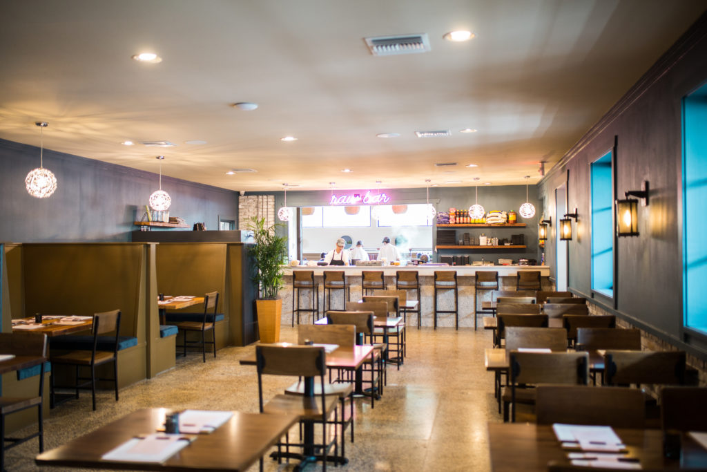 The idea of connection through food, Lyons explains, is “our ethos.” It’s what guided the design of the restaurant, from a cozy bar and lounge up front to the open raw bar in the back and all the airy dining space in between.