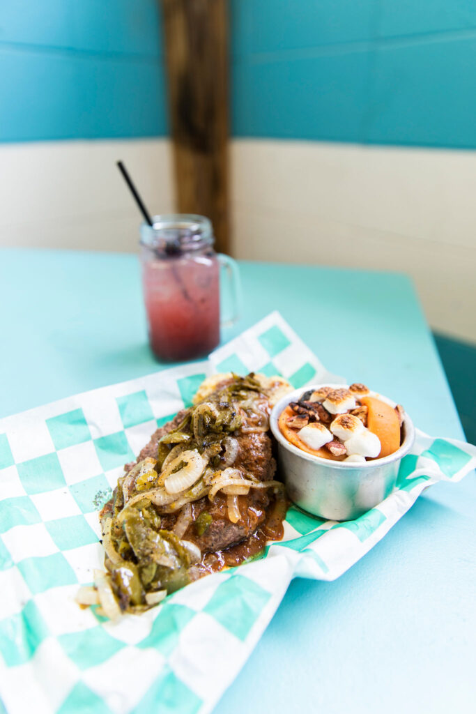 The location is just a few houses down from a house that Wilson says he lived in as a heroin addict. In what feels like a cosmic coincidence, he returns 20 years sober to open a restaurant dedicated to his childhood love of comfort food. The germ of the idea that Wilson, along with Joe Martin and Bryan Rogers, turned into Soulshine came from a July Fourth collard greens cookoff Wilson had with a friend’s mother after he came back from college and improved upon the recipe. To his opponent’s frustration, Wilson’s recipe won.