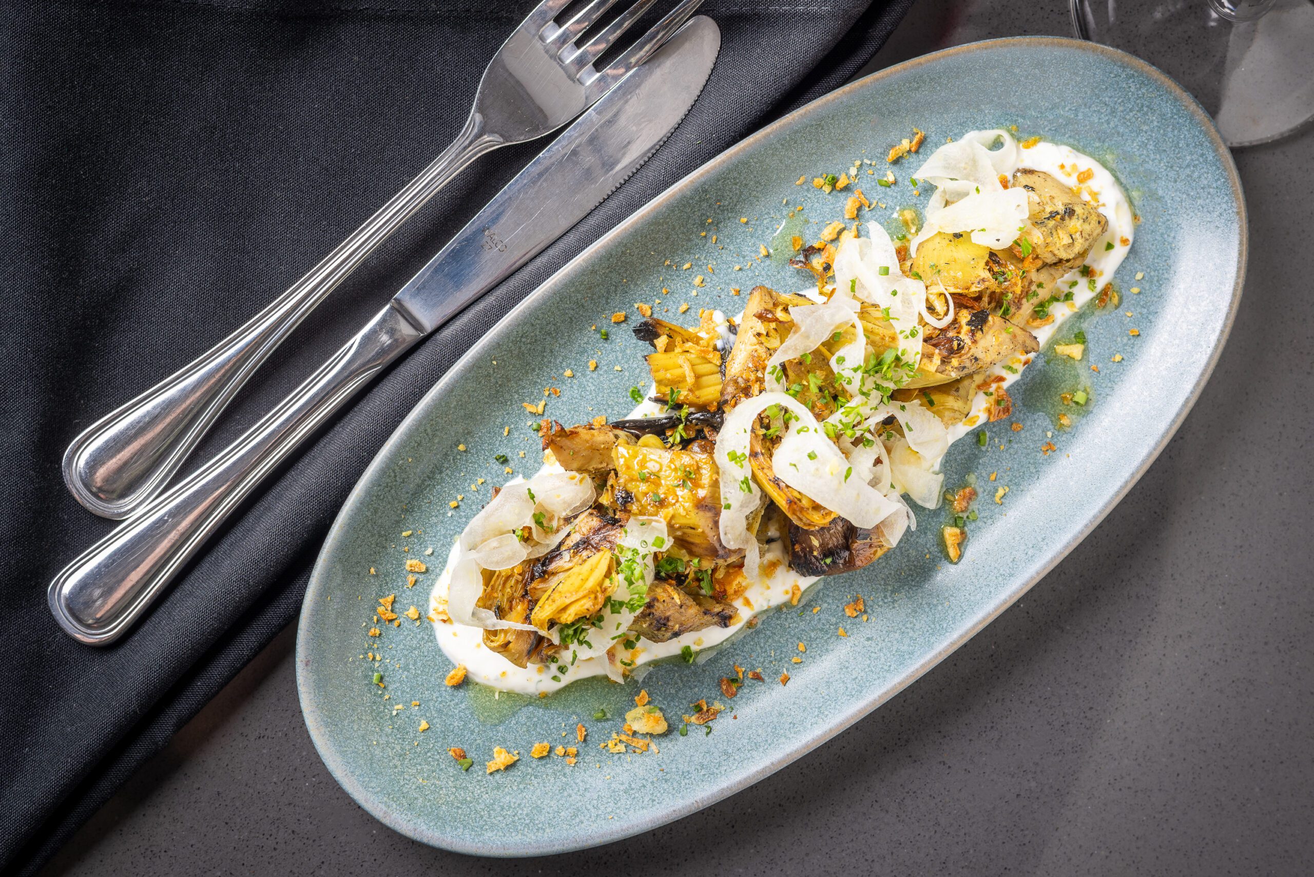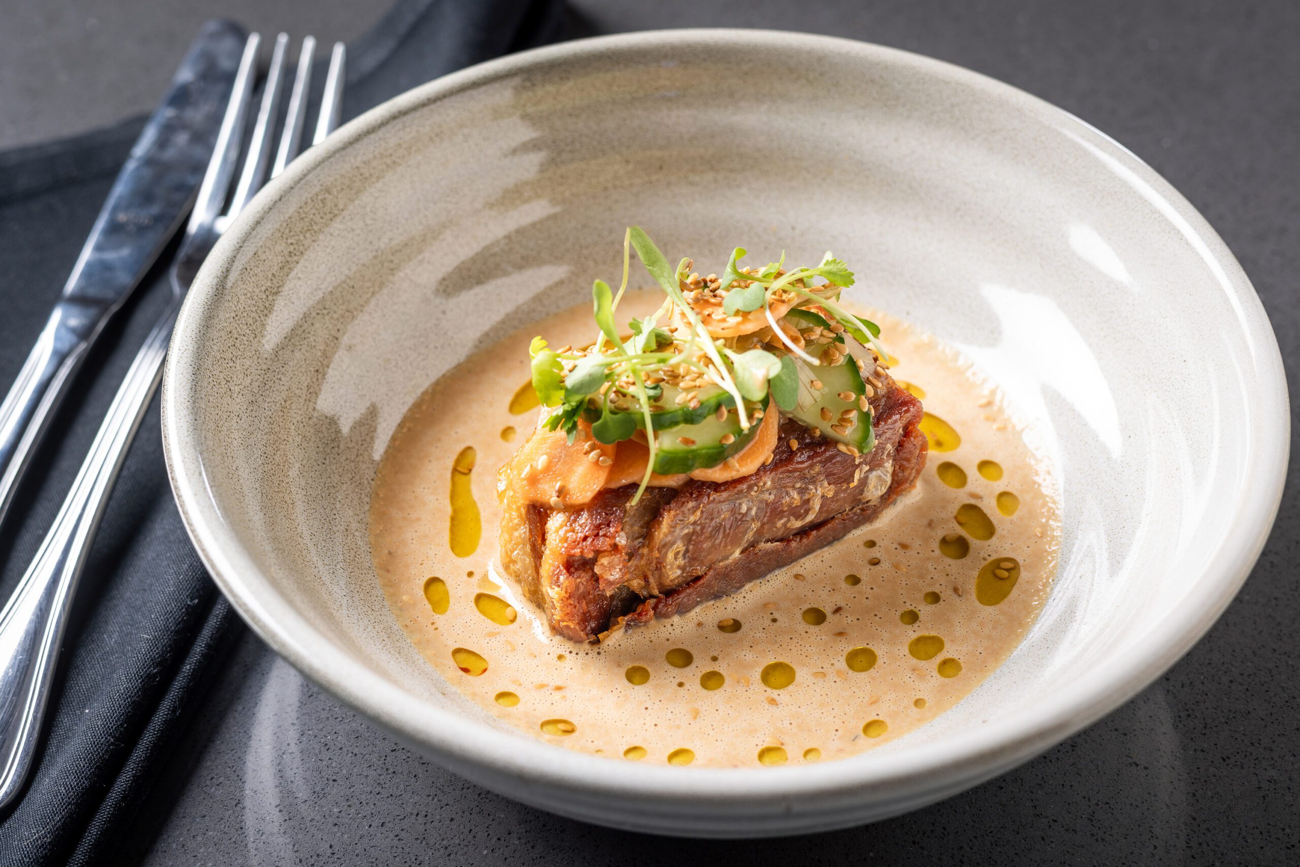 The new menu was created by Eric Sibley, formerly of 18 Steak, who has served as executive chef for both Bin 77 and the Solera since November 2024. Dykes says the team wanted the new restaurant to appeal to area residents.