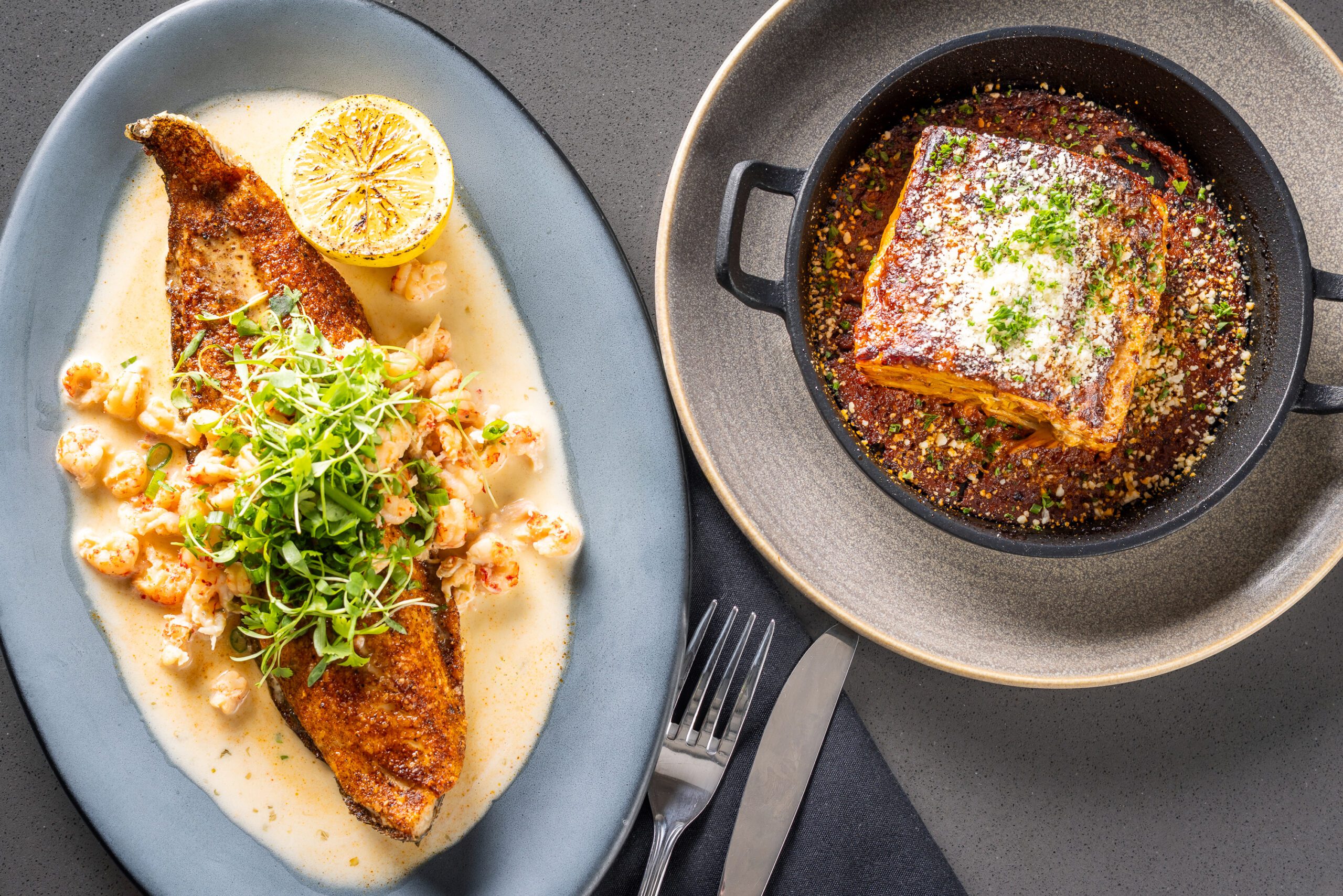 Dishes include blue crab fritters and grilled artichoke with herbed yogurt, shaved fennel and crispy shallots. Sibley is also rolling out pork and beef lasagna with handmade saffron pasta, chicken schnitzel with mushroom gravy, and crawfish-topped redfish served on the half shell.