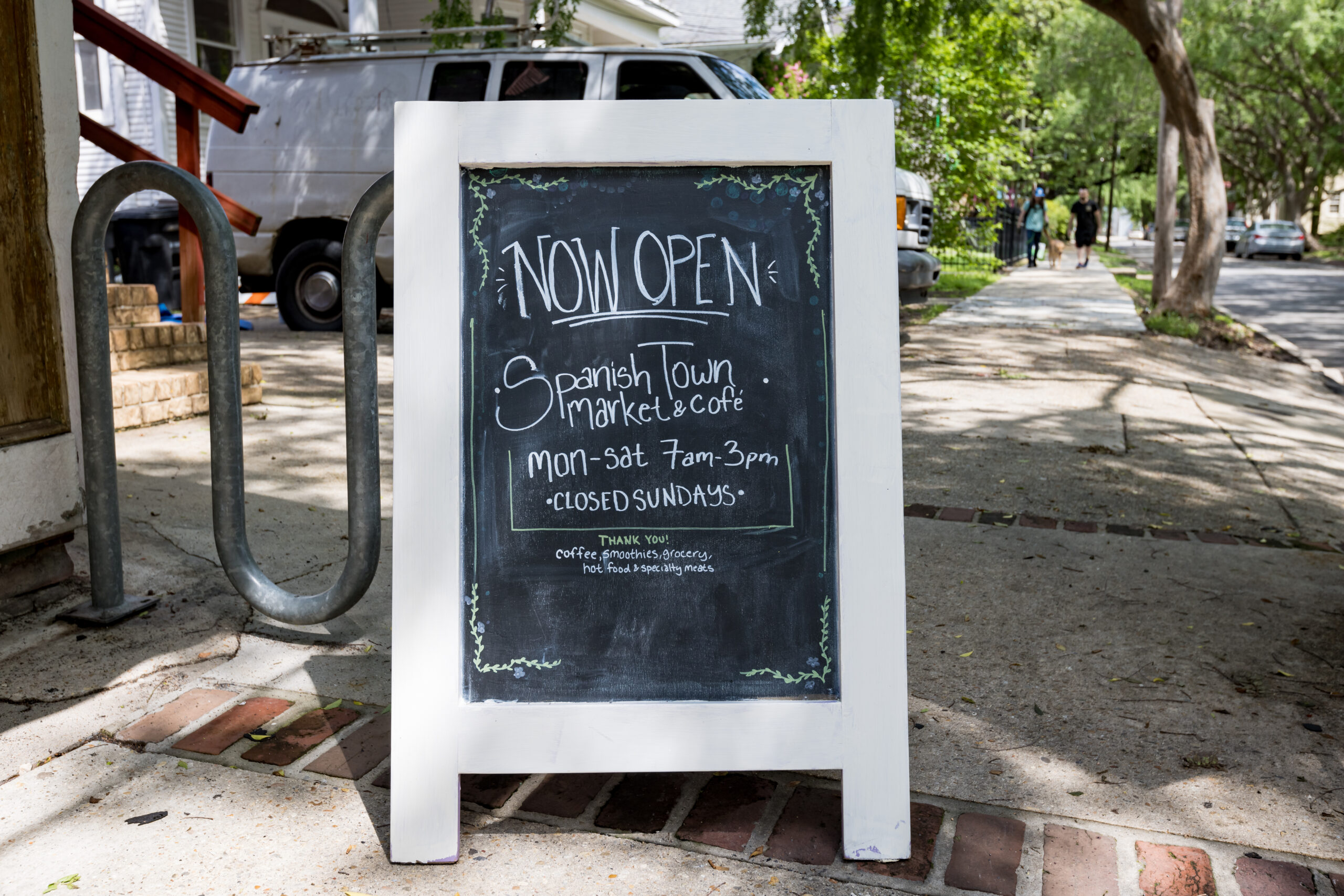 “It’s in the heart of the neighborhood, and we always want it to be open,” says Spanish Town Road resident Jamie Gober, who had dropped by Spanish Town Market and Cofe earlier this week with her dog to check on its progress. “I plan on stopping in and having coffee or lunch and just hanging out. We love supporting it. It’s a big part of the neighborhood.”