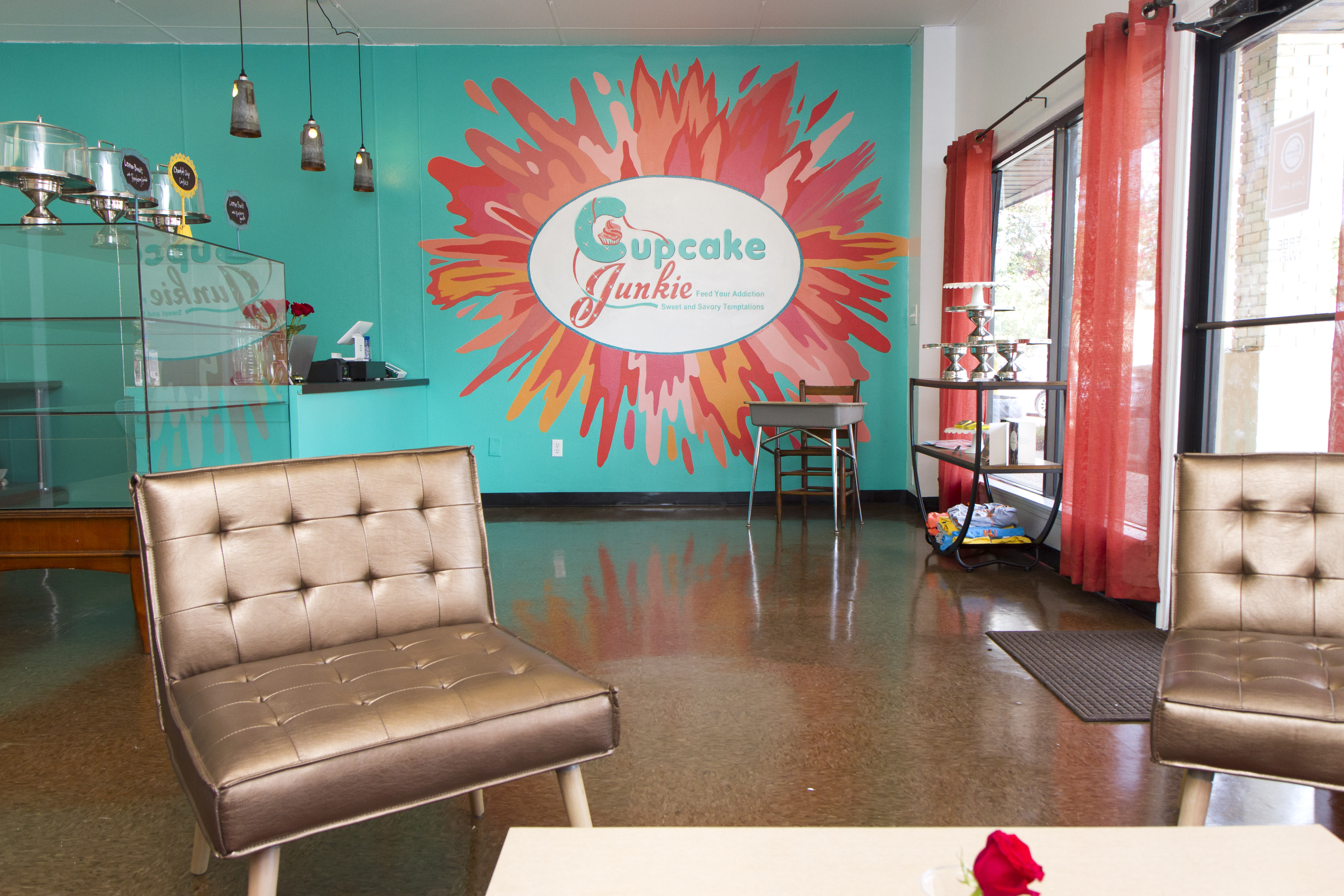 Located in the Lake Park shopping center on Coursey Boulevard, Cupcake Junkie is nestled between Baton Rouge Dance Connection and Looks Hair Salon. Inside, the bakery is bright and colorful. The walls are painted in different shades of blue and orange, a theme that carries throughout the store.
