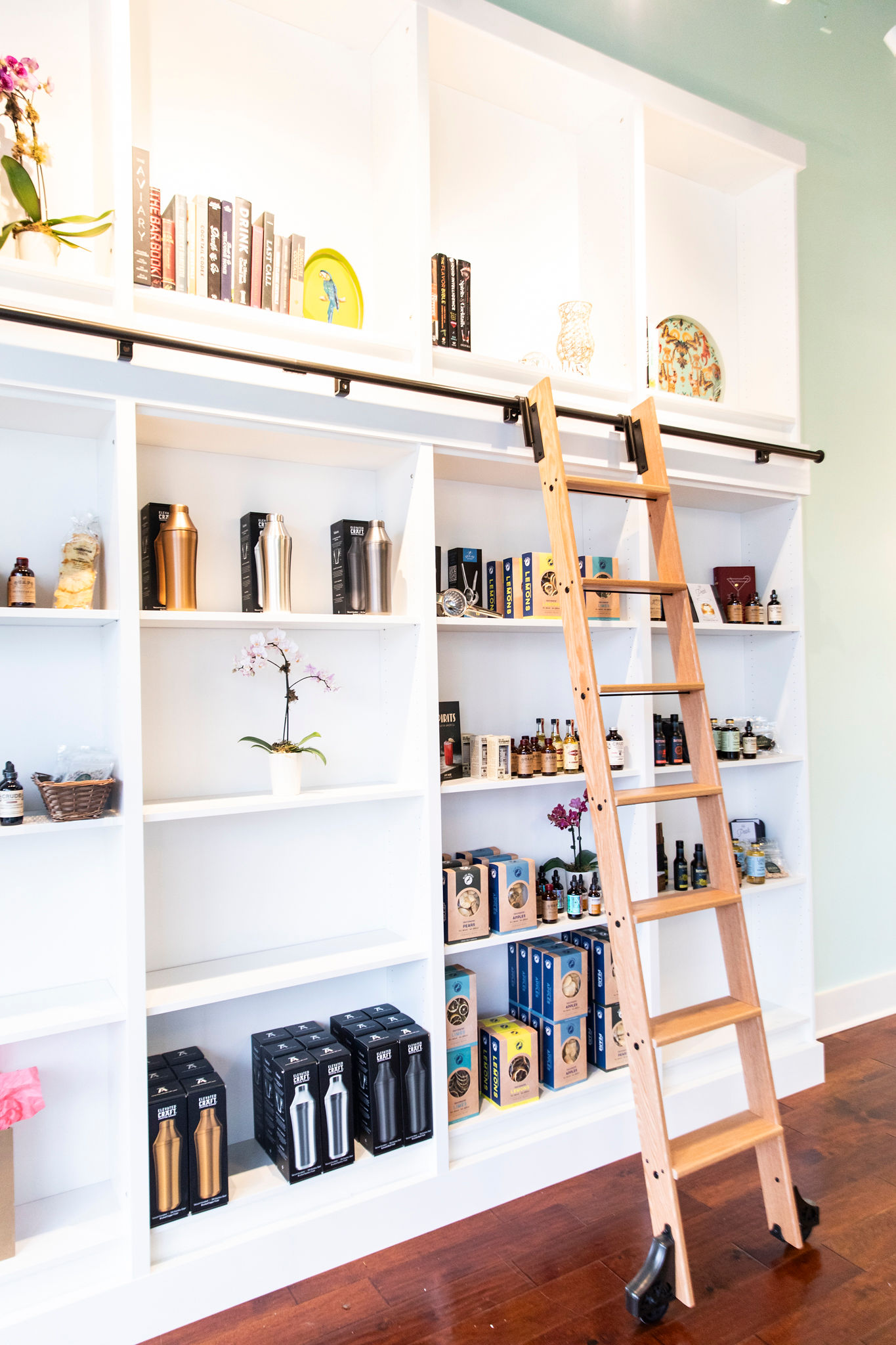 With her new location, Howell is also able to provide alcohol to attendees. This means The Tipsy Librarian is considered a bar, and Howell was required to have a full bar and back bar located at the far end of the space. But she says she won’t be shaking up drinks for those shopping or attending a class just yet—though she says the idea of a reservation-only speakeasy night is floating around her head.