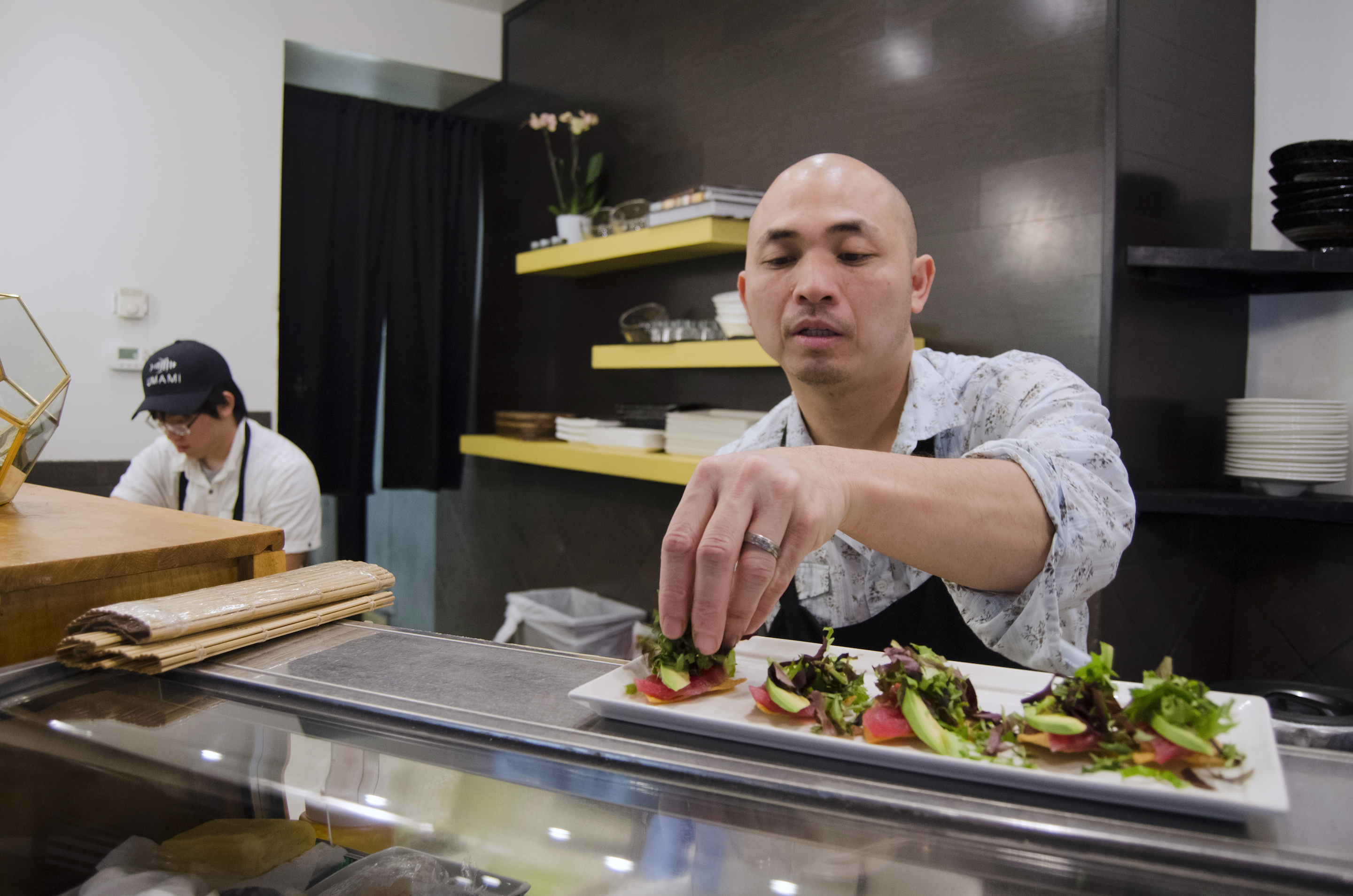 Hello Sushi’s chef of eight years, Cong Nguyen, purchased the restaurant with his wife, Thom, in summer 2015, and has since overhauled the interior and built a new menu from the ground up. Umami’s menu features small plates, soups and salads, nigiri and sashimi, Japanese entrees and 34 sushi rolls. The Nguyens aim to bring an elevated take on Japanese cuisine without alienating customers at any price point—a crucial strategy, given their close proximity to LSU’s campus.