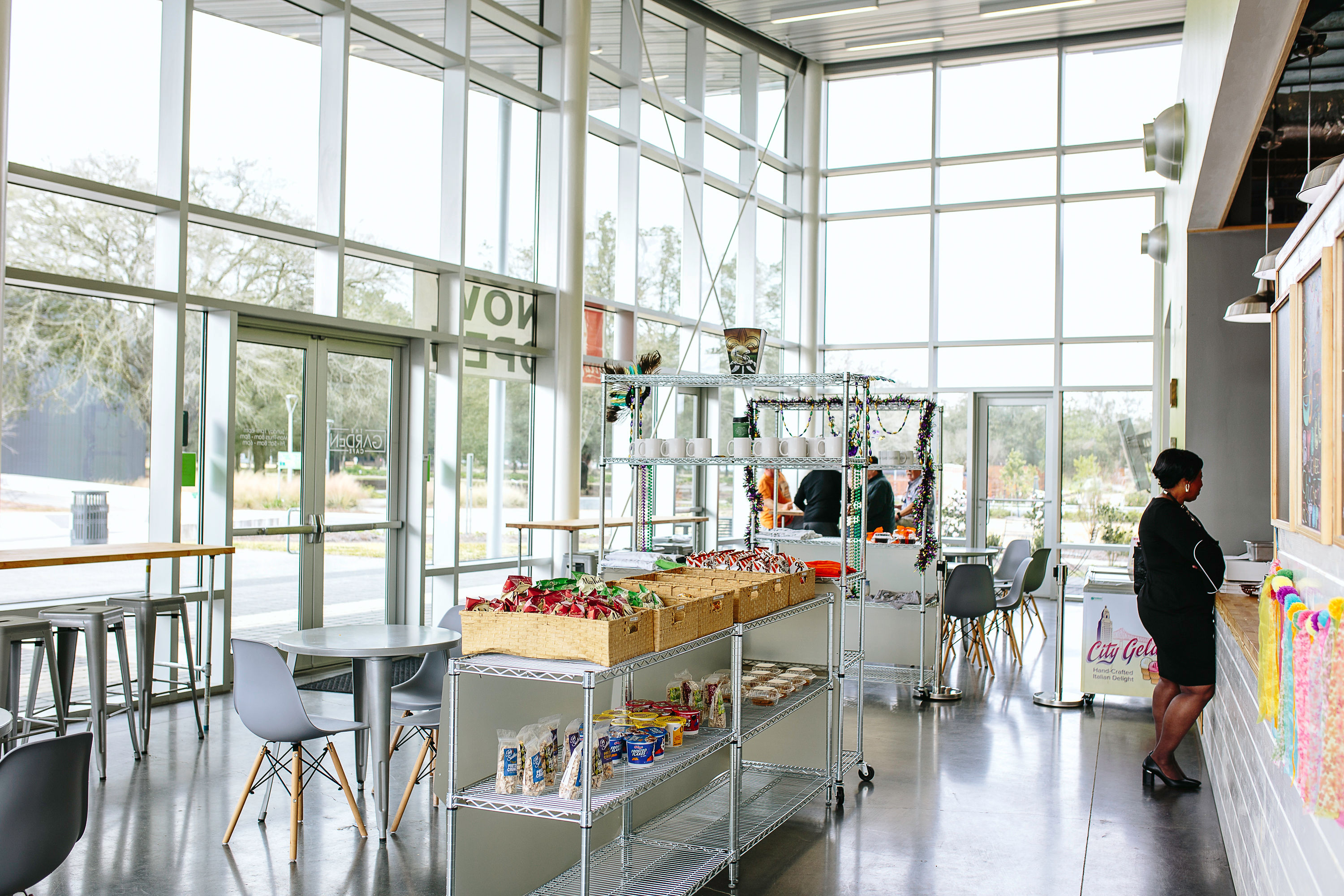 At the cafe, locals can purchase coffee, tea, smoothies, soups, salads, sandwiches, pastries and sweets. The cafe’s staff makes dishes fresh in-store and offers prepped meals to-go.