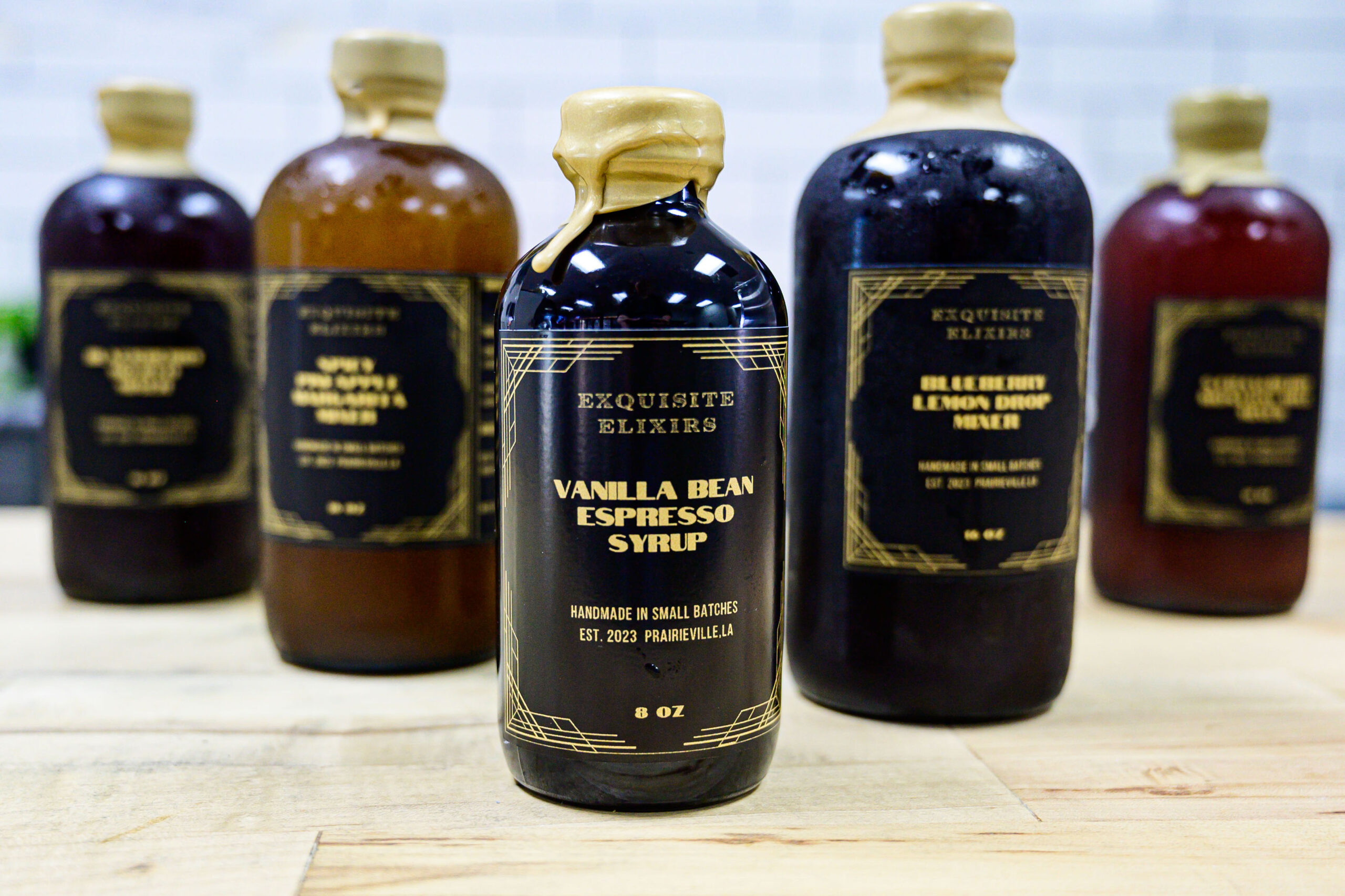 Exquisite Elixirs’ mixers and syrups are designed to be used with multiple different spirits. The syrups are more concentrated than the mixers and can be used for more than just cocktails. Think: toppings for ice cream, coffees or baking.