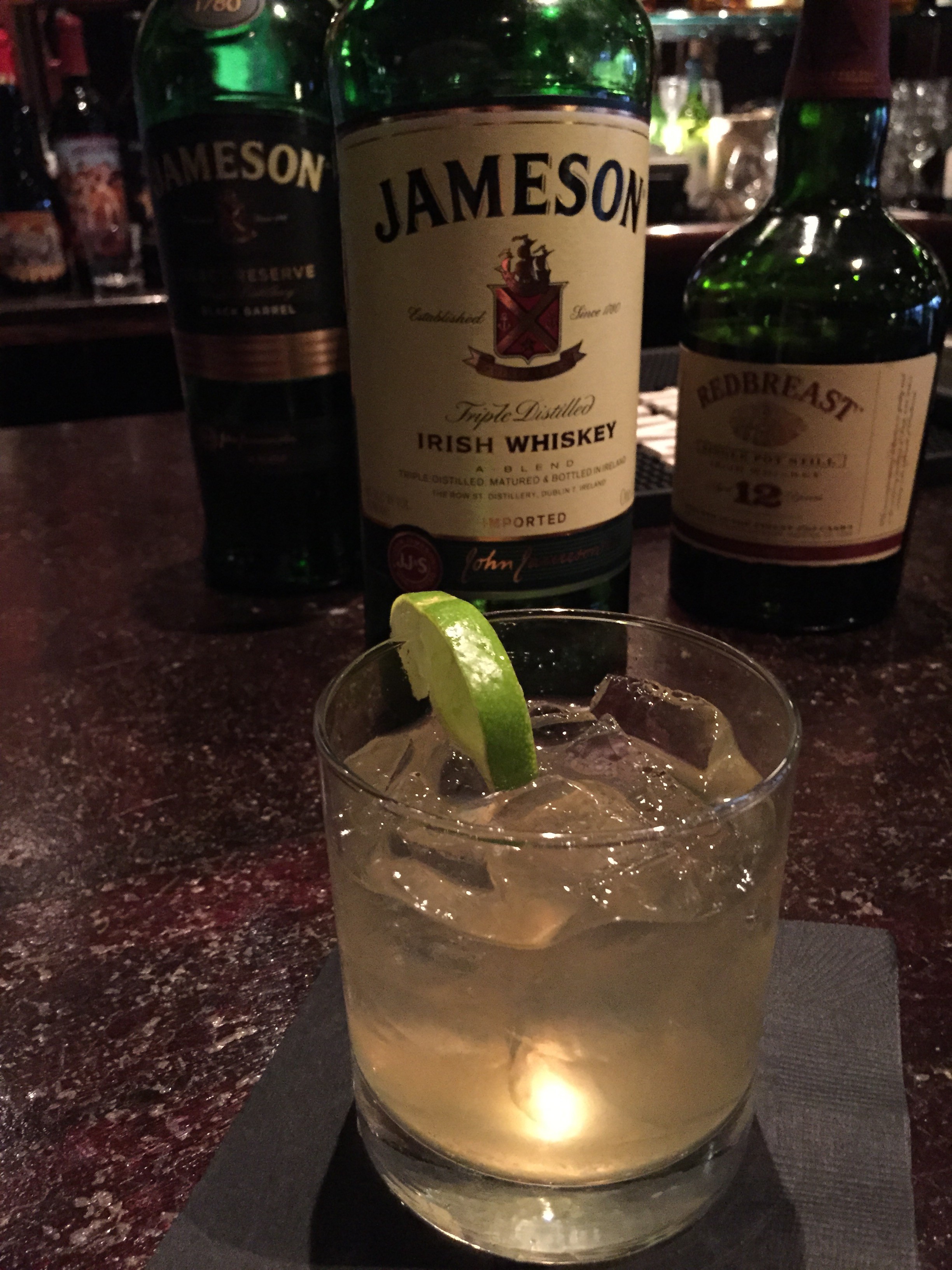 Mix half an ounce of lemon juice with one and a half ounces of Jameson (or Irish whiskey), pour over ice, then top with ginger beer.