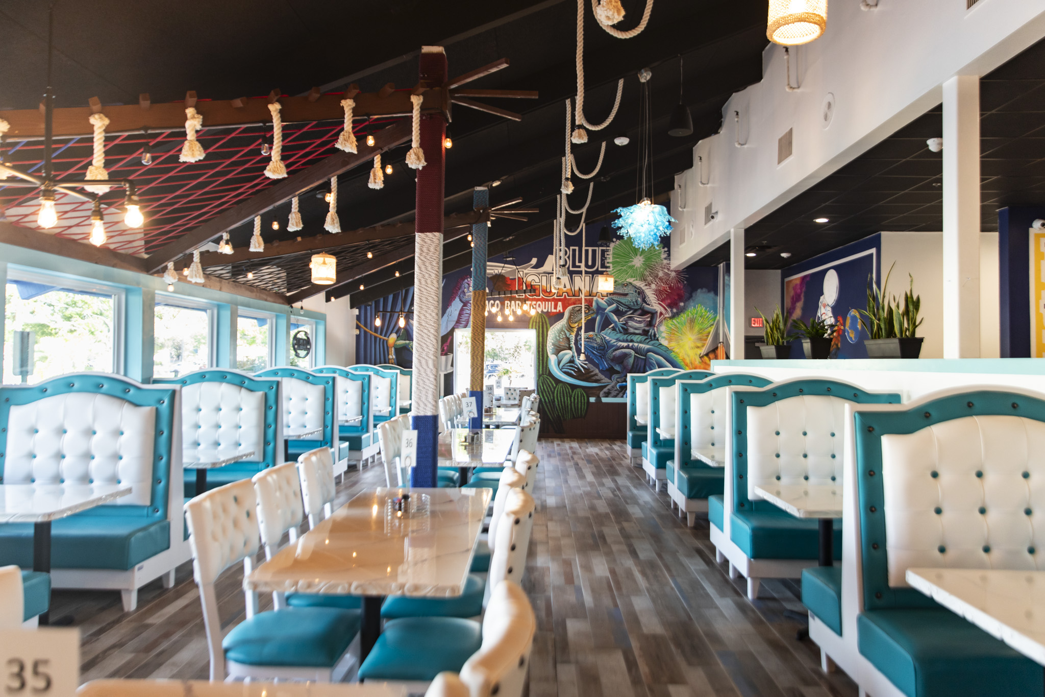 Inside Blue Iguana Taco Bar & Tequila, serving birria dishes and smoking cocktails