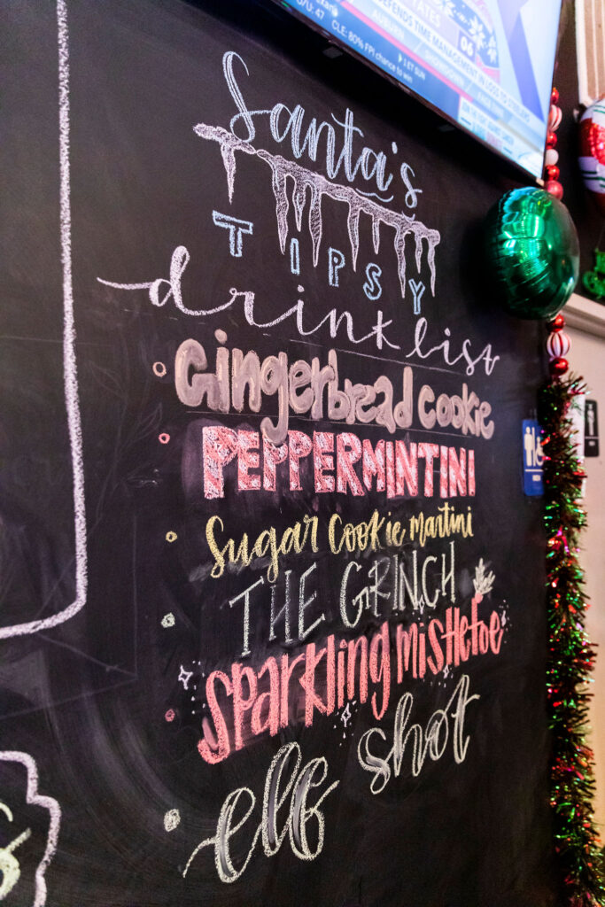 The bar is anticipating a busy night for the Festival of Lights happening downtown on Friday, Dec. 2. Brown says this will be Jolie Pearl’s kick-off for its Christmas pop-up, although the decorations have been up since last week.