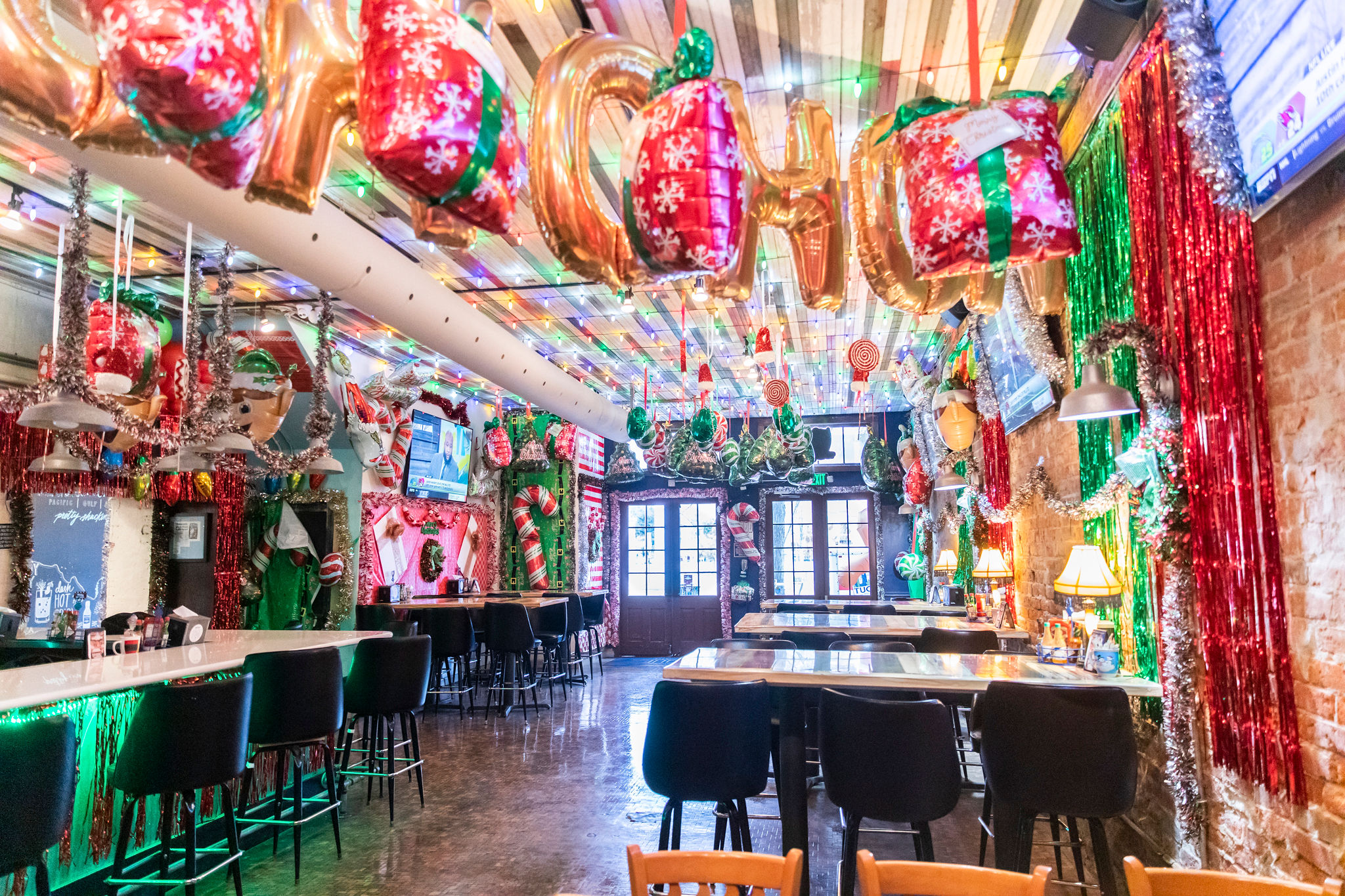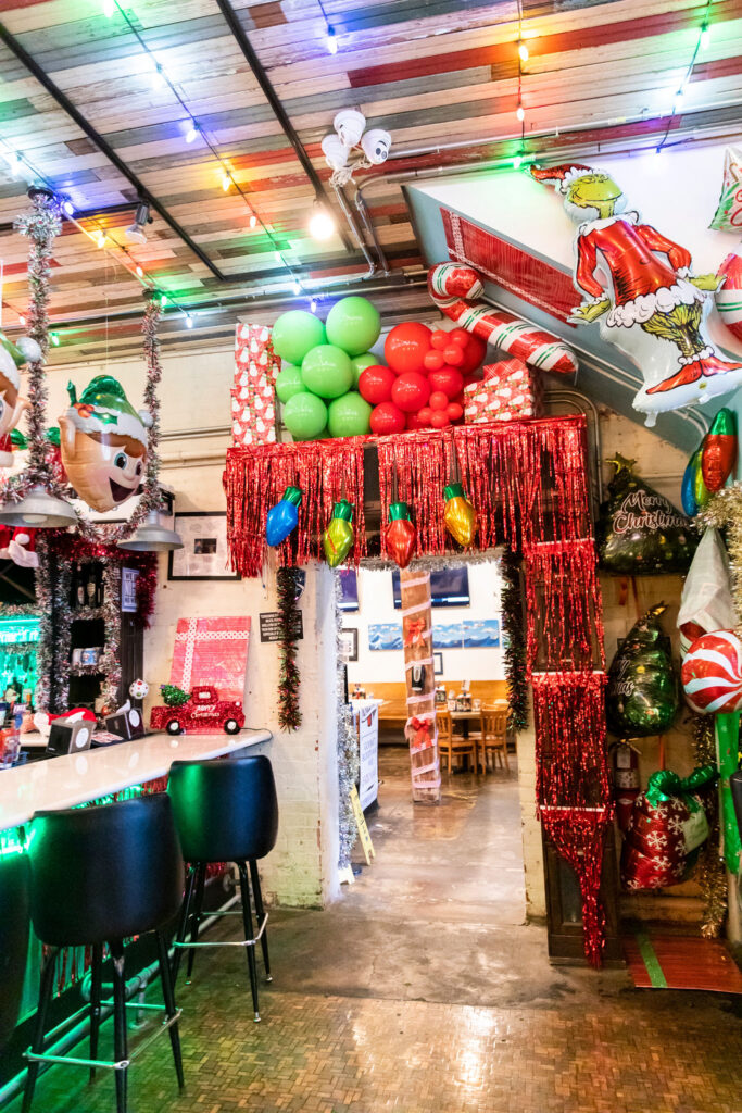 The rest of Jolie Pearl’s dining area is lightly dusted with more subtle holiday decor, in order to accommodate all customers, including those who don’t celebrate Christmas.