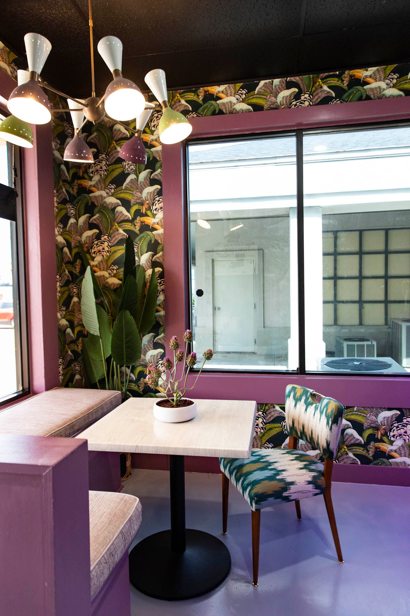 Anna Smith, lead designer at Anna Nicole Interiors, helped bring the Hendersons’ vision for the interior to life. Considering the daiquiri’s Cuban origins, the duo wanted to emulate the tropics through patterned wallpaper, bright colors and greenery throughout.