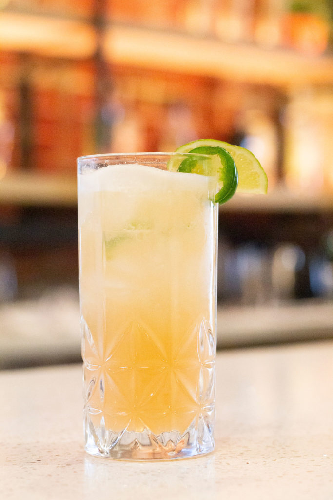 Signature cocktails include the Strawberry Mexican Mule, a refreshing take on a traditional mule; and the Jalapeño Mezcalrita, a fresh-pressed mezcal margarita. Pointer says she tries to stock the bar with ethically sourced tequilas that give back to the communities they’re produced in.