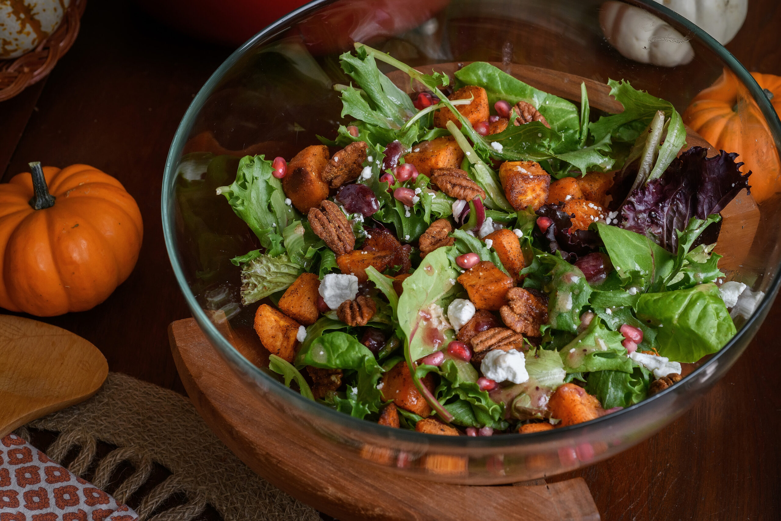 Late-autumn Salad with Roasted Sweet Potatoes and Cranberry Vinaigrette