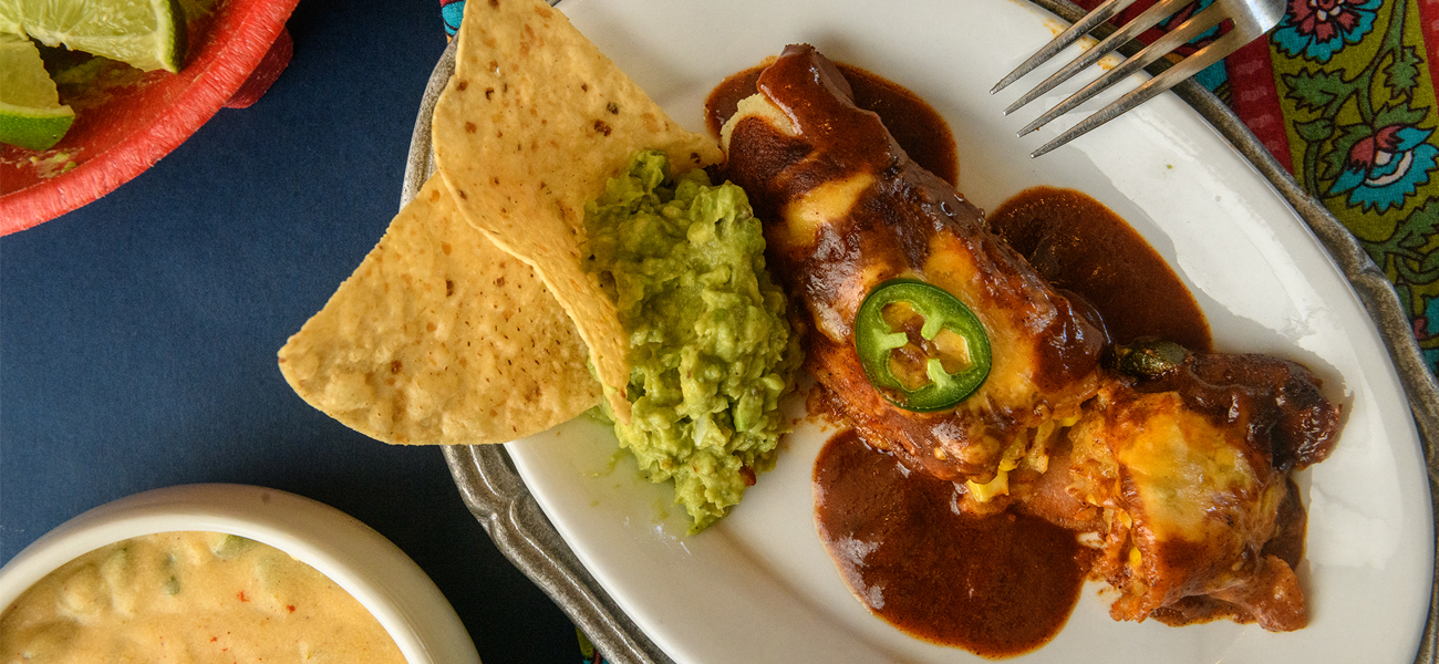 Roasted Vegetable Enchiladas in Red Chili Sauce