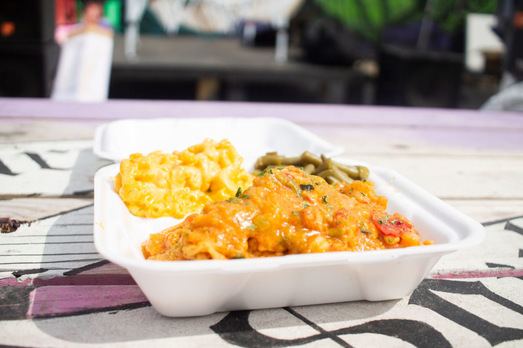 Keeping spirits high and stomachs full seems to be the motto at Jive Turkey, which was the first restaurant to open inside the shipping container venue Millennial Park last year. Music just loud enough to make you bop your head and colorful murals on the walls are the backdrop for family and friends chatting over turkey legs and those hefty sides.