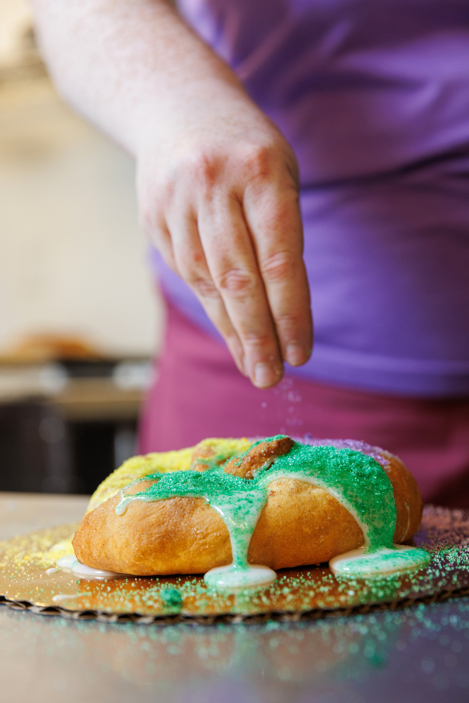 In 2024, CounterspaceBR pumped out over 1,700 festive cakes. Somewhere between eight to 12 of those per day were gluten-free—and they always sold. Hays and her team also ship a ton of cakes, including vegan and gluten-free ones. Last year, CounterspaceBR’s king cakes made it to all 50 states along with Mexico, and some European countries.