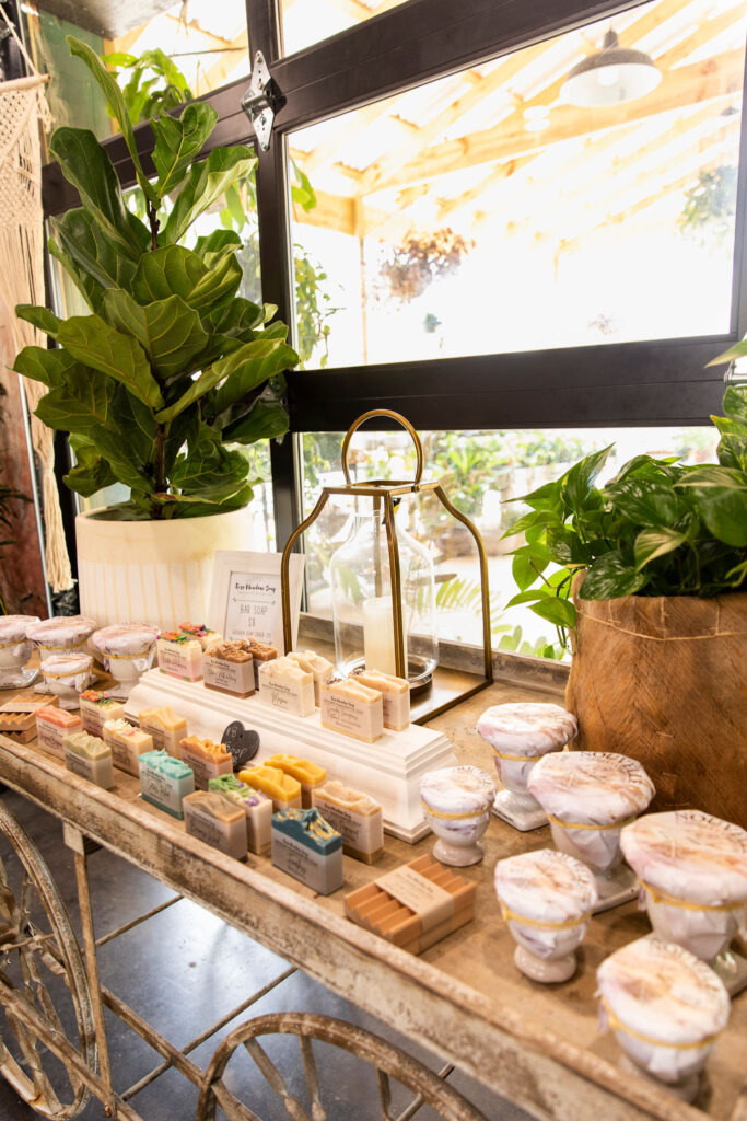 Surrounding The Parker Barber is D’s Garden Center, which occupies the back half of the property. D’s Garden Center, owned by Darren Duffy, continues the legacy of Garden District Nursery with a wide selection of plants, as well as local vendors’ products like handmade soaps from Fern Meadows and honey from Bindi. Duffy also has plans to sell Christmas trees out of the nursery’s shaded greenhouse.