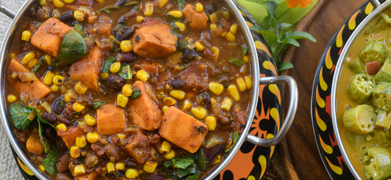 Githeri is a nourishing stew from the Kikuyu tribe in Kenya. It is made up primarily of beans, corn and tomatoes, along with onions and spices like hot curry powder and smoky paprika. Veggies, such as kale and potatoes, are often added to the Githeri as well. It is traditionally prepared with dried beans, but swapping for canned red kidney beans or pinto beans help to make this an easy, quick one-pot meal. This is a well-balanced, healthy dish and the perfect meal to make any night of the week.