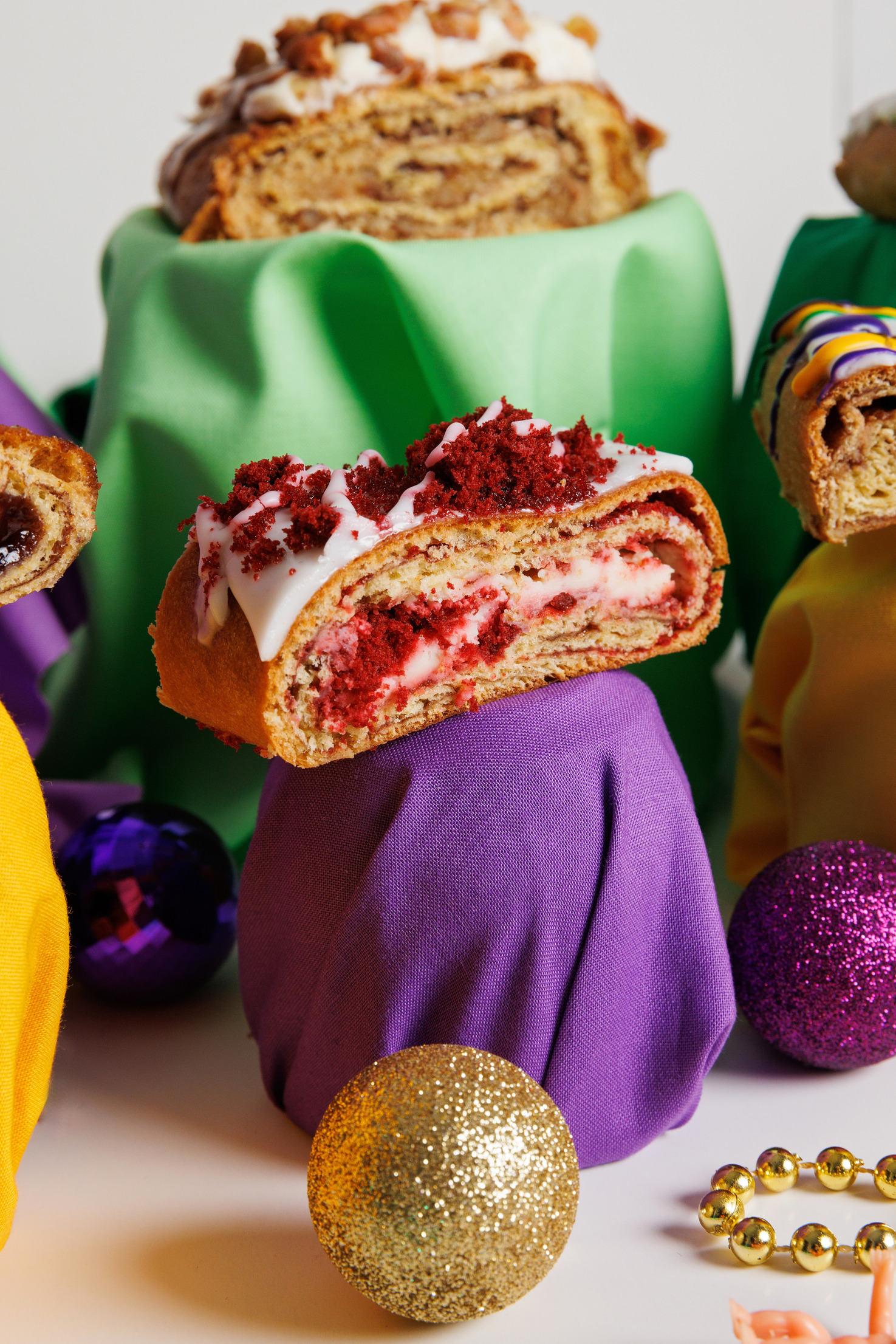 “It’s kind of like their Super Bowl. … They go to town for these two months,” Calandro says. “That’s part of the reason we don’t do king cakes outside of Mardi Gras. By time Fat Tuesday rolls around, they’ve been going hard all season. It also makes the king cakes we do this season so special. It builds demand and rarity.”