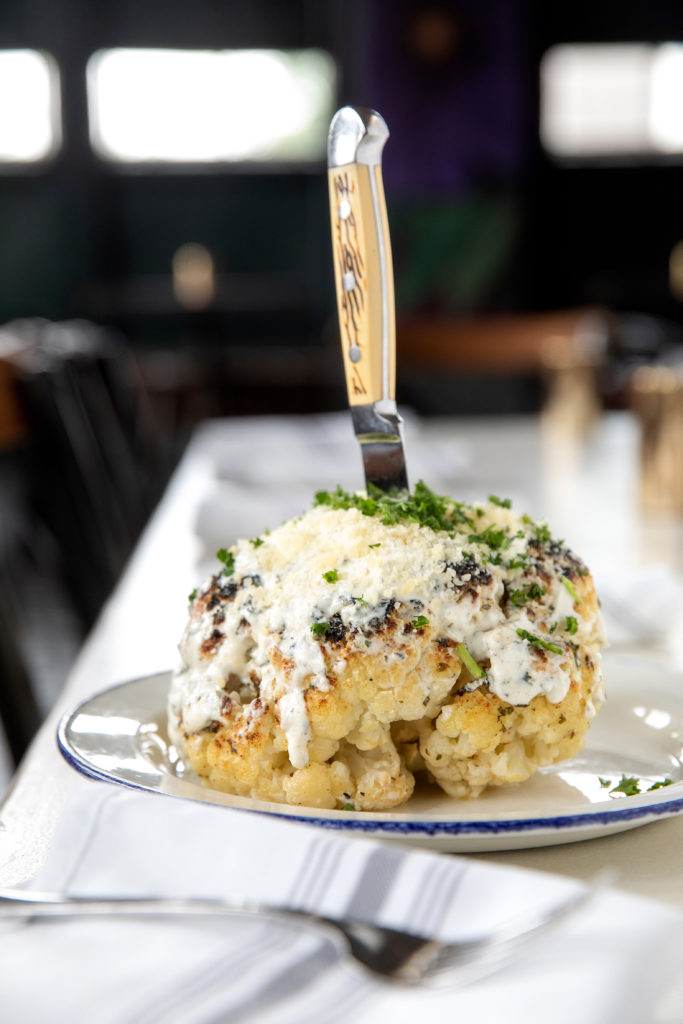 On right: Though it’s a side, the Roasted Cauliflower could feed a whole table.