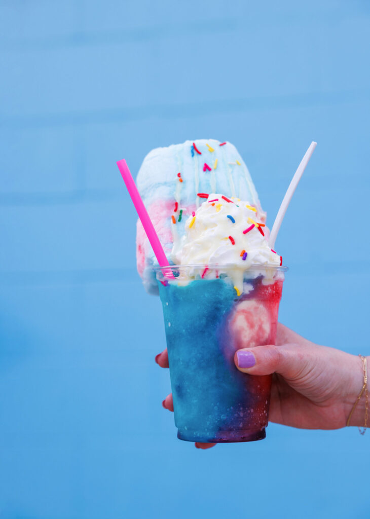 While the snoball toppings are eye-popping, the flavors are just as inventive. Think: Cookie Dough, Fruitasia (a mango and peach mix), Silver Fox (which tastes like a marshmallow-forward almond cake) and the tropical red Wine Cooler.