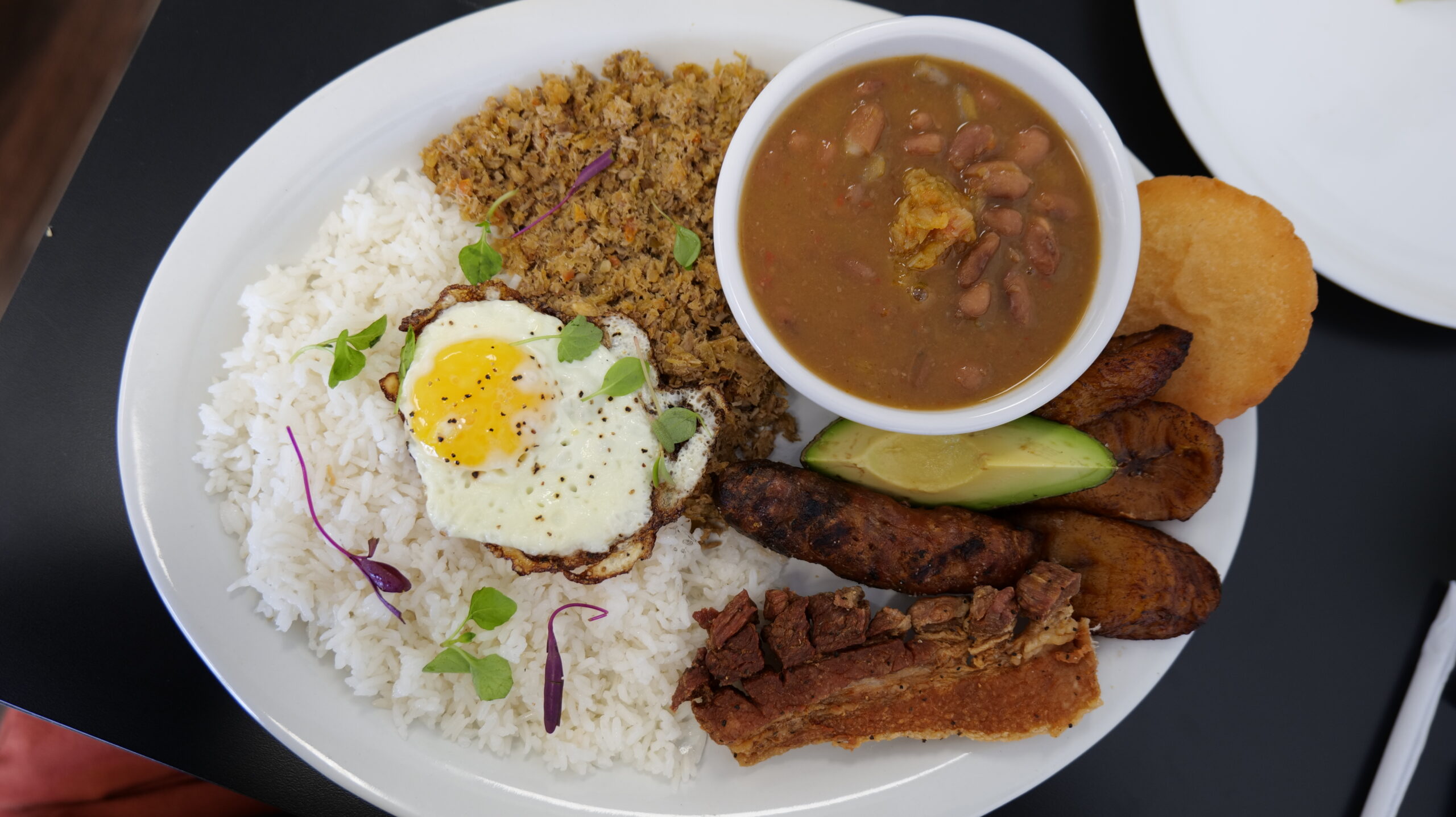 Each dish packs its own punch, from the sausage in their bandeja pasia—a savory Colombian plate with beans, rice, arepa, meat, plantains, chicharrón and avocado—to the creaminess of the guacamole in their loaded tostones.