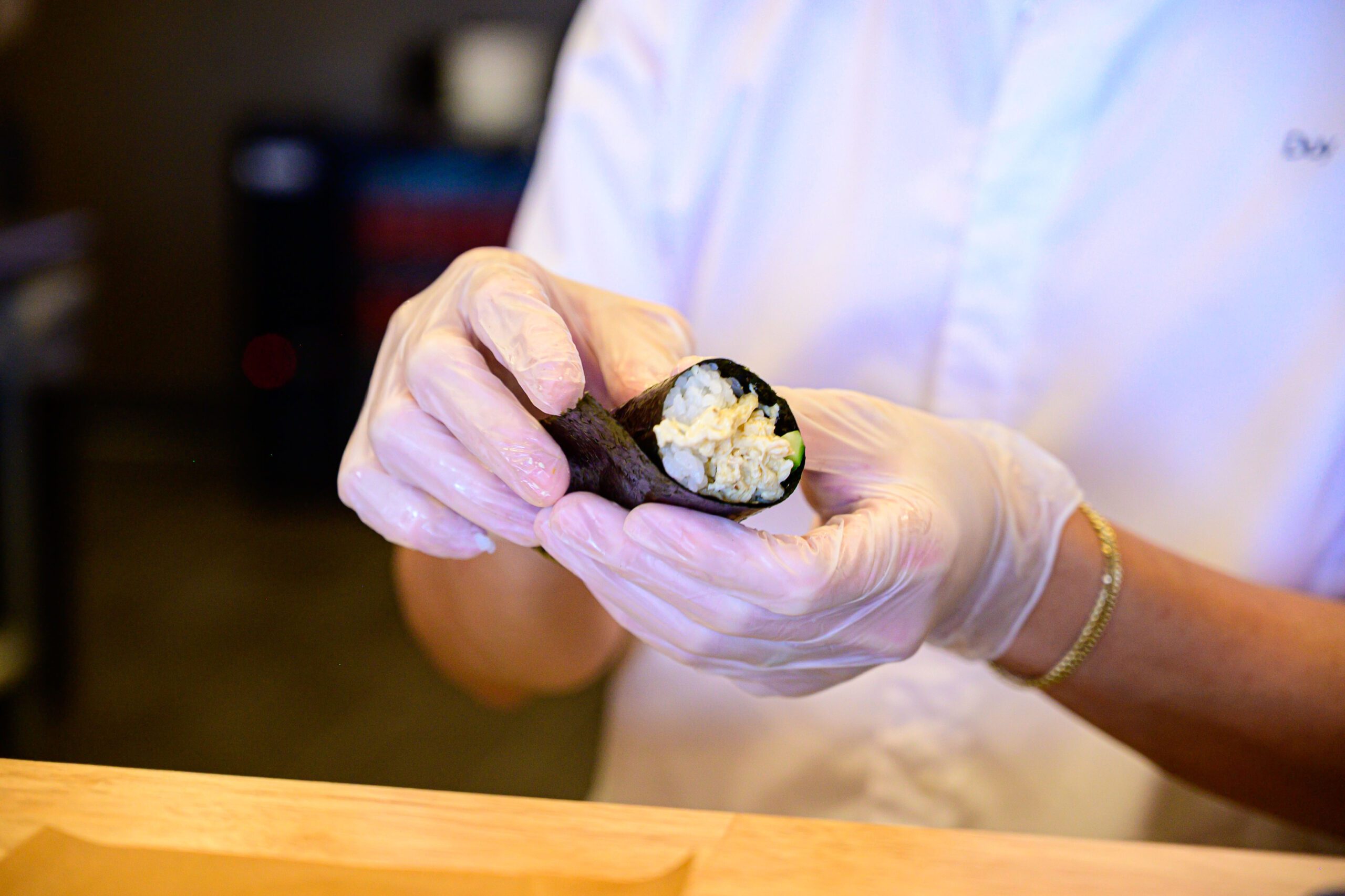 “We had to rebuild this, make it into a U shape, so that we would kind of force the customers to come to us; that way they can have that whole full experience,” Nguyen says. “Because with the hand rolls, you want to have crispy seaweed, warm rice and premium ingredients inside, so you’ve got to eat it right away to keep it crisp.”