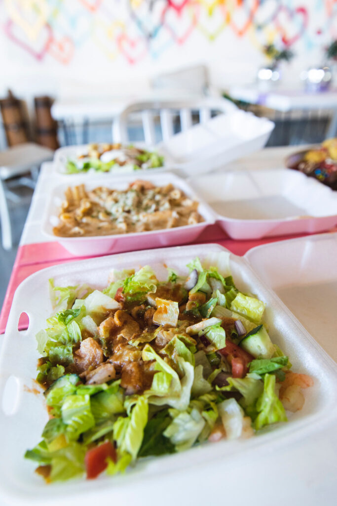 That means morsels of sirloin, shrimp, oysters, cheese stuffed jalapeños and chicken thighs. The catering menu also features brunch charcuterie boards and other breakfast and brunch items. While it’s not a restaurant, it’s possible to pick up rotating boxed salads and prepared foods from the cooler.