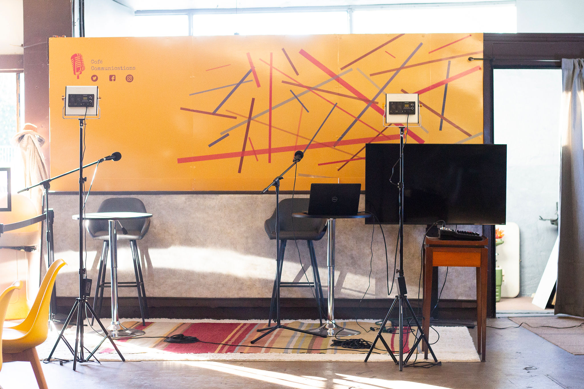 Now, local creatives can rent the recording booth to record podcasts and film live shows. The space includes all the high-tech equipment needed, such as microphones, professional lighting, an audio mixer and a TV screen for logo placement or to interact with virtual audiences.