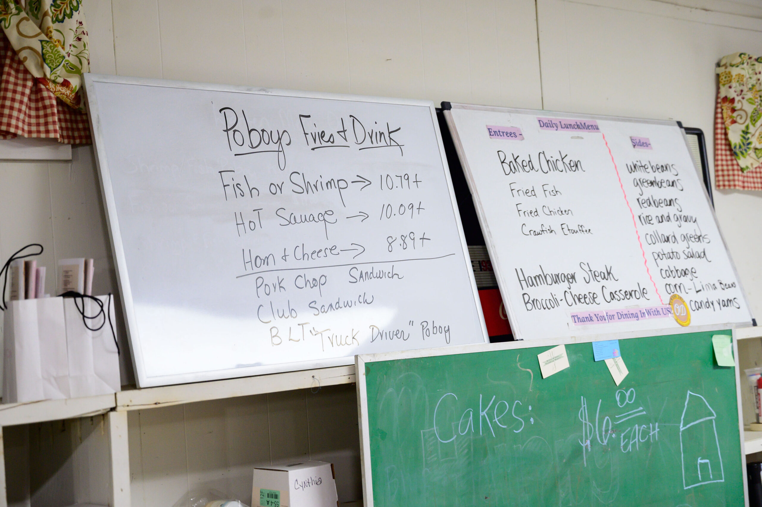 The section where shelves once held Camellia beans, bags of rice and Wesson oil now has a handful of tables where diners take seats alone or in small groups, casually chit-chatting with each other. Green scurries back and forth from the serving line to the kitchen for emerging hot dishes. The distance from line to kitchen isn’t insignificant. The worn, whitewashed paint on the plywood floor confesses years of determined steps, nowadays taken in black Skechers. Culinary logisticians might advise a more efficient floor plan, but here’s betting Green wouldn’t listen. There’s comfort in repetitive tasks, well-earned in a spot open nearly 90 years.