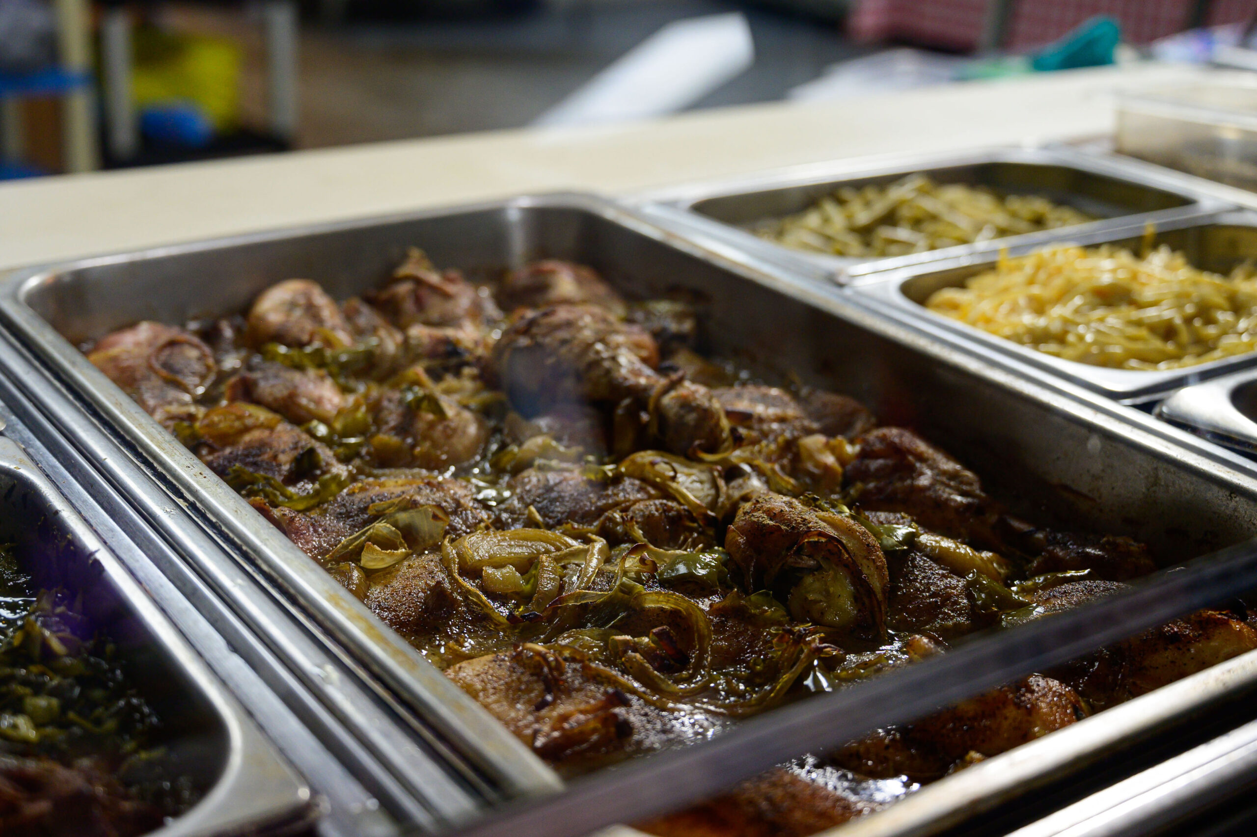 Many of her customers grew up here in Valley Park, or live or work nearby. Some call in orders after glancing at the day’s offerings on Facebook, but others prefer to queue in the hot food line for a visual on the rotating bounty. Through the glass shield, they spot aluminum pans heavy with dishes from the soul food canon. Some days, it’s fried fish and fried chicken. Other days, it’s baked turkey wings, hamburger steak, smothered pork chops and lasagna. A stash of braised, scallion-topped pigtails lurks in the back for die-hards. Requisite red beans and rice—a constant in Louisiana’s soul food-verse—appears daily.