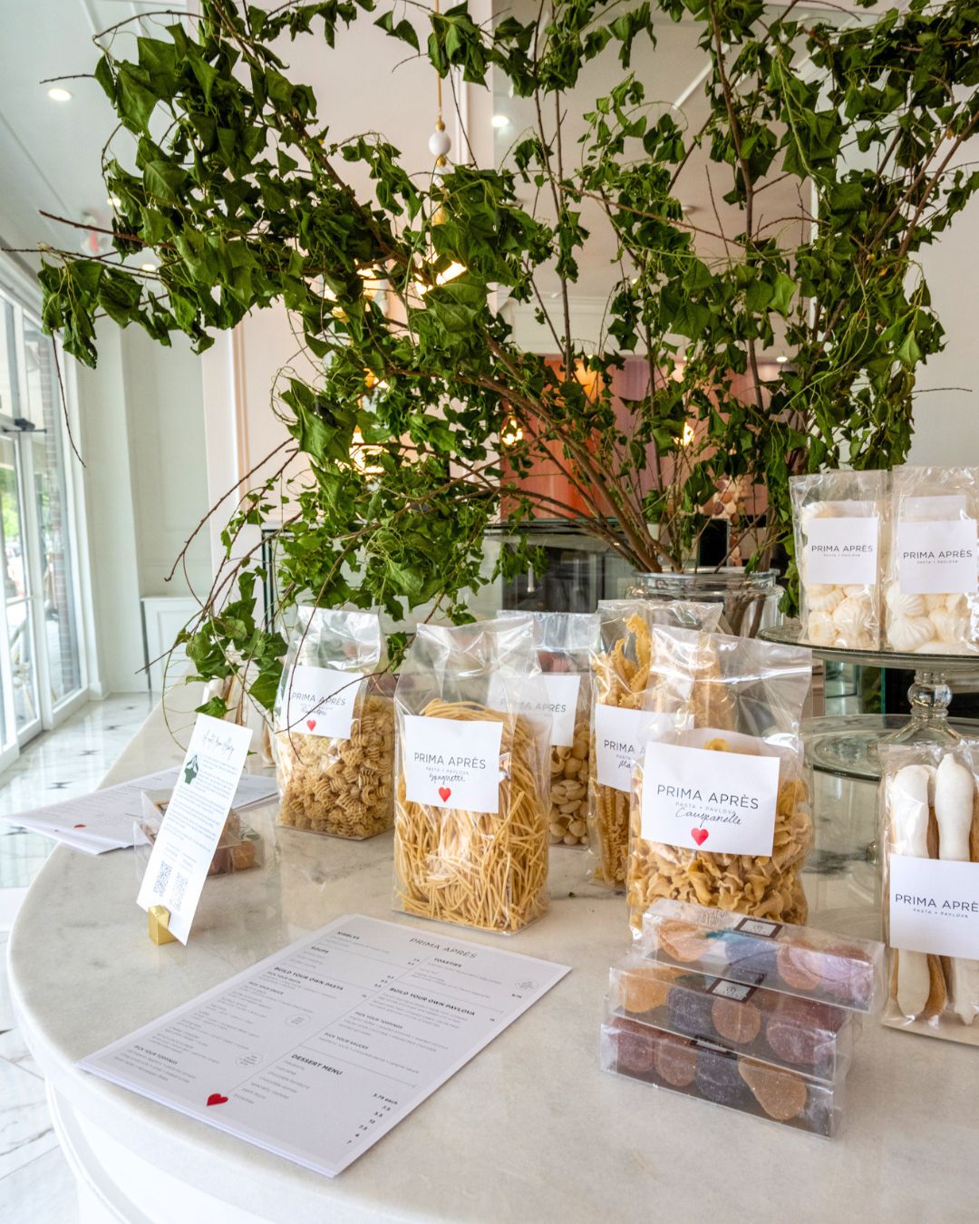 Prima Après’ savory offerings have also grown, with an updated menu that features proteins, soups and “toasties,” which are open-faced sandwiches made with toasted sourdough bread topped with melted aged white cheddar cheese. Pastas are made fresh using semolina flour and water and are shaped using bronze dies. Sauces are also made in house. Pastas are also made to order, and customers can customize their servings by choosing the shape, sauce and toppings ranging from red pepper flakes and olives to breadcrumbs and Parmigiano Reggiano cheese.