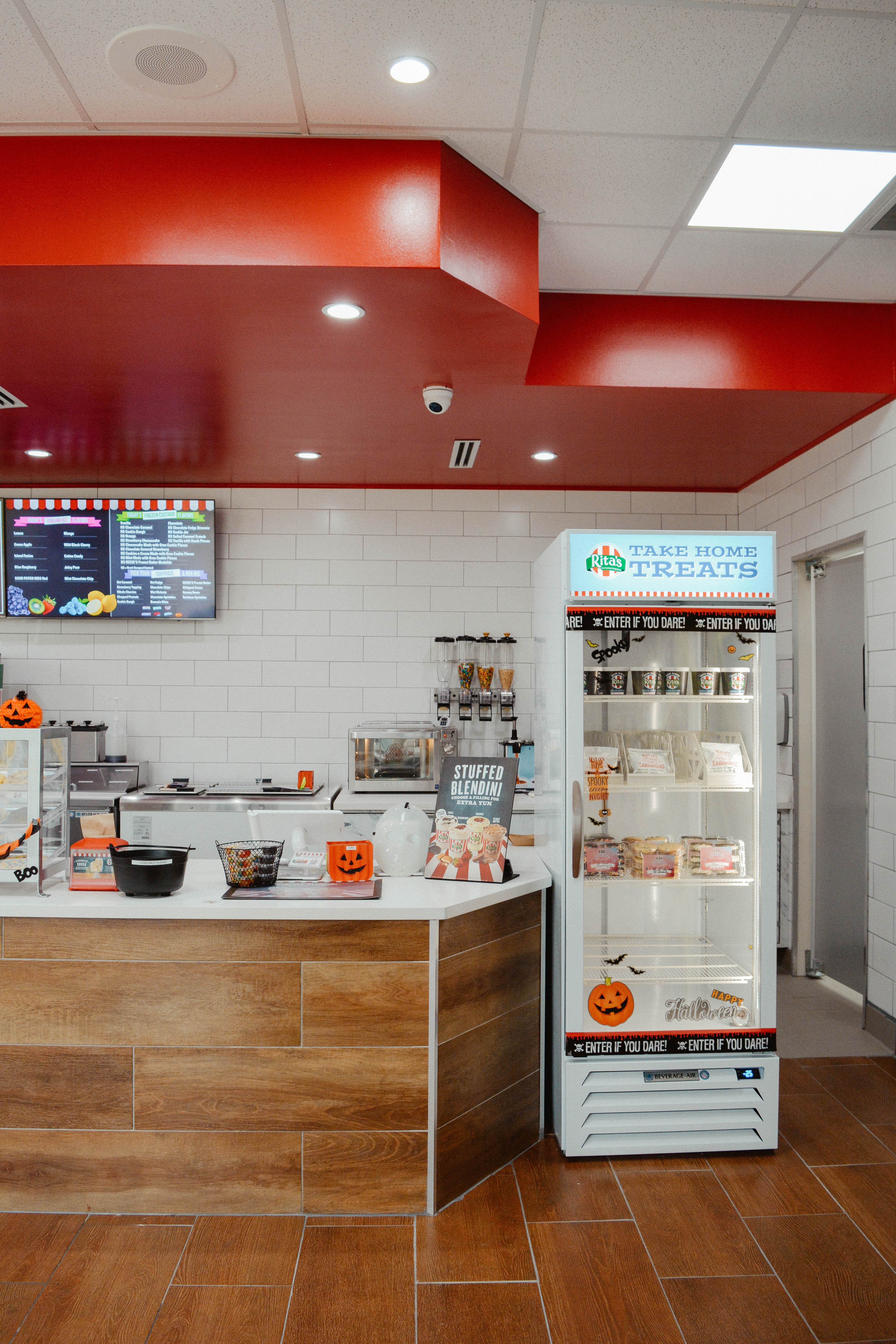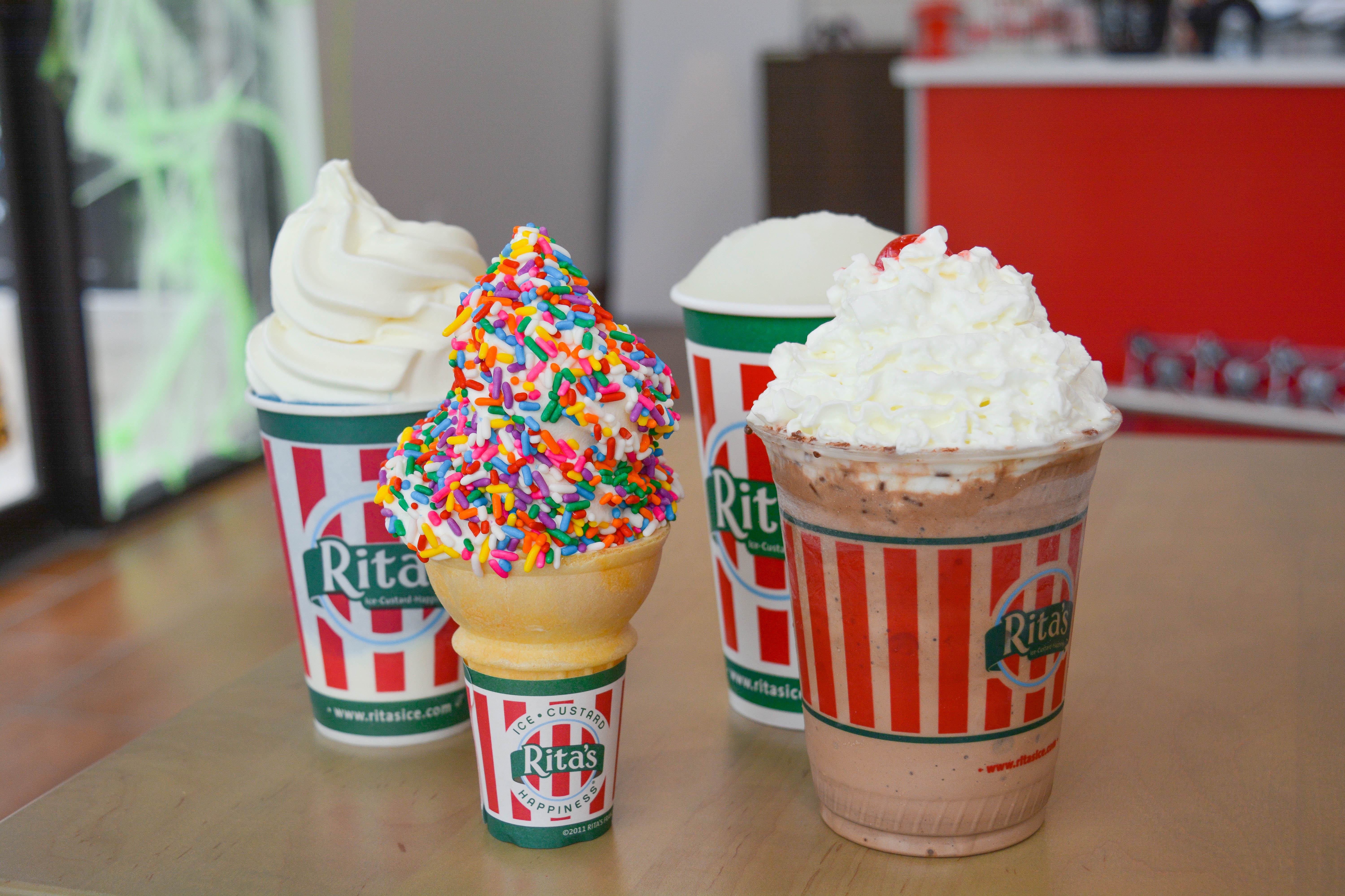 Walking inside the brick building, the white walls give the interior a clean look, but the main attraction is its menu full of frozen desserts, some of which Rita’s newbies might find unfamiliar.