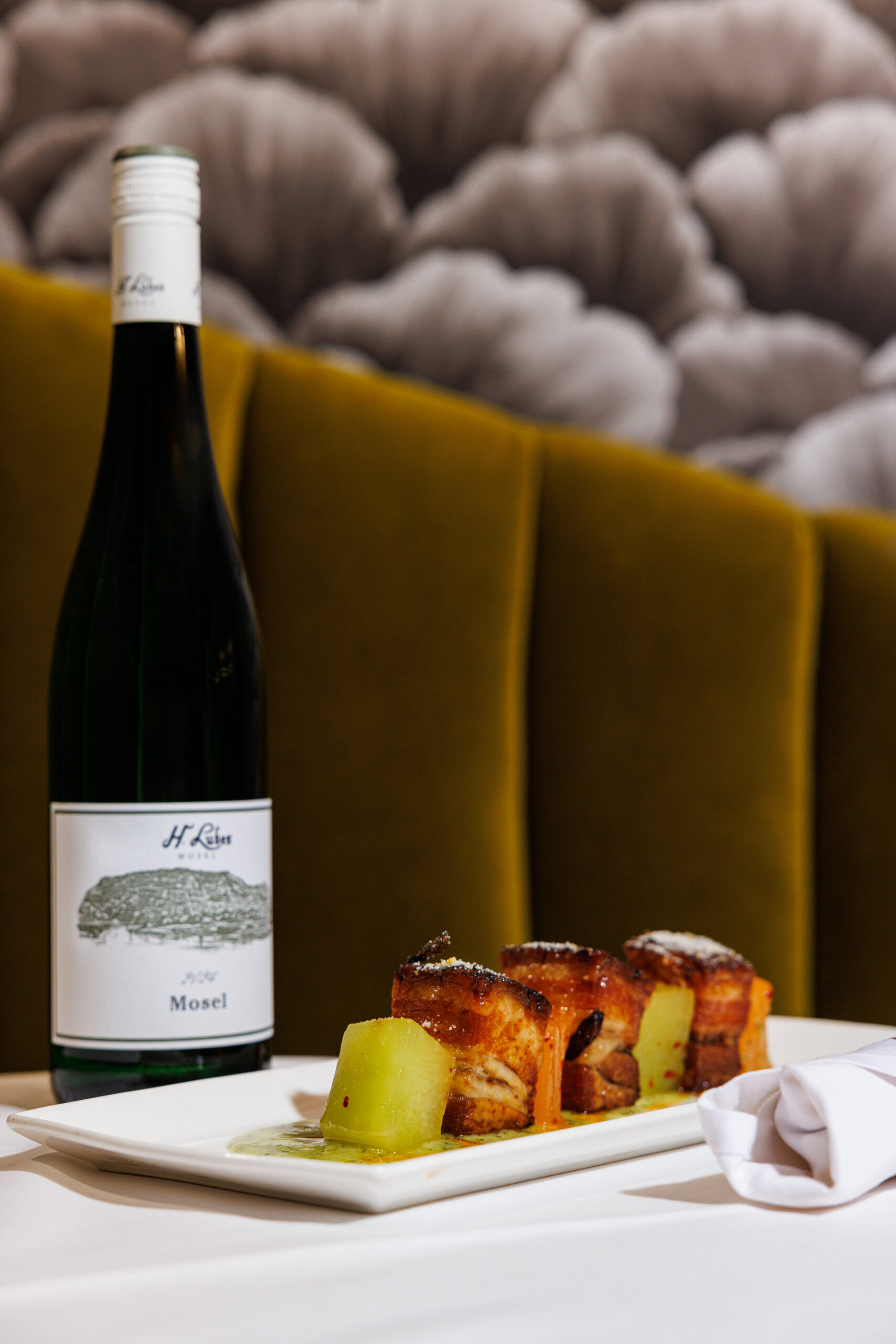 “I’ve liked having fun finding pairings that people would be like, ‘That doesn’t sound like that should go together,’” he says. “When in doubt, pinot noir and sparkling go with everything. Focus on just pairing the food. Think about the intensity of the dish and the intensity of the wine. We don’t want a really rich wine with maybe a really meaty dish.”