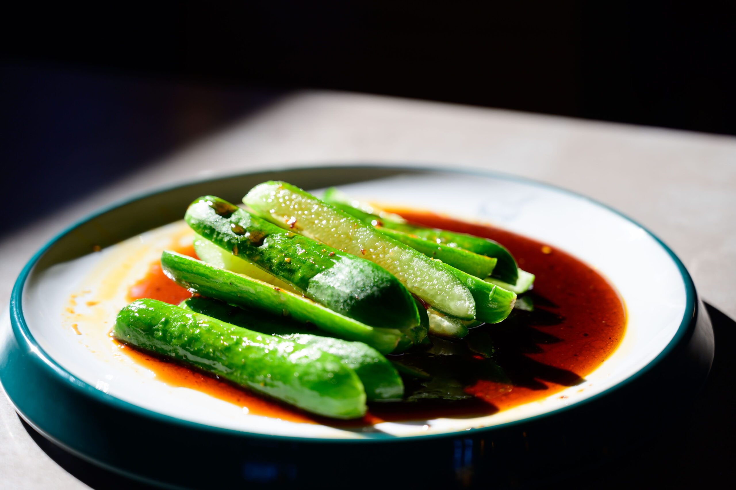 The dumpling spot’s decor includes rich red walls speckled with bamboo dumpling steamers and lantern-style lighting that gives the space a warm glow. The bold color choice and design hold significance in Asian culture, Chen says. “In China, we like red so much because we think red can bring true love, so red is more like happiness,” Chen says.