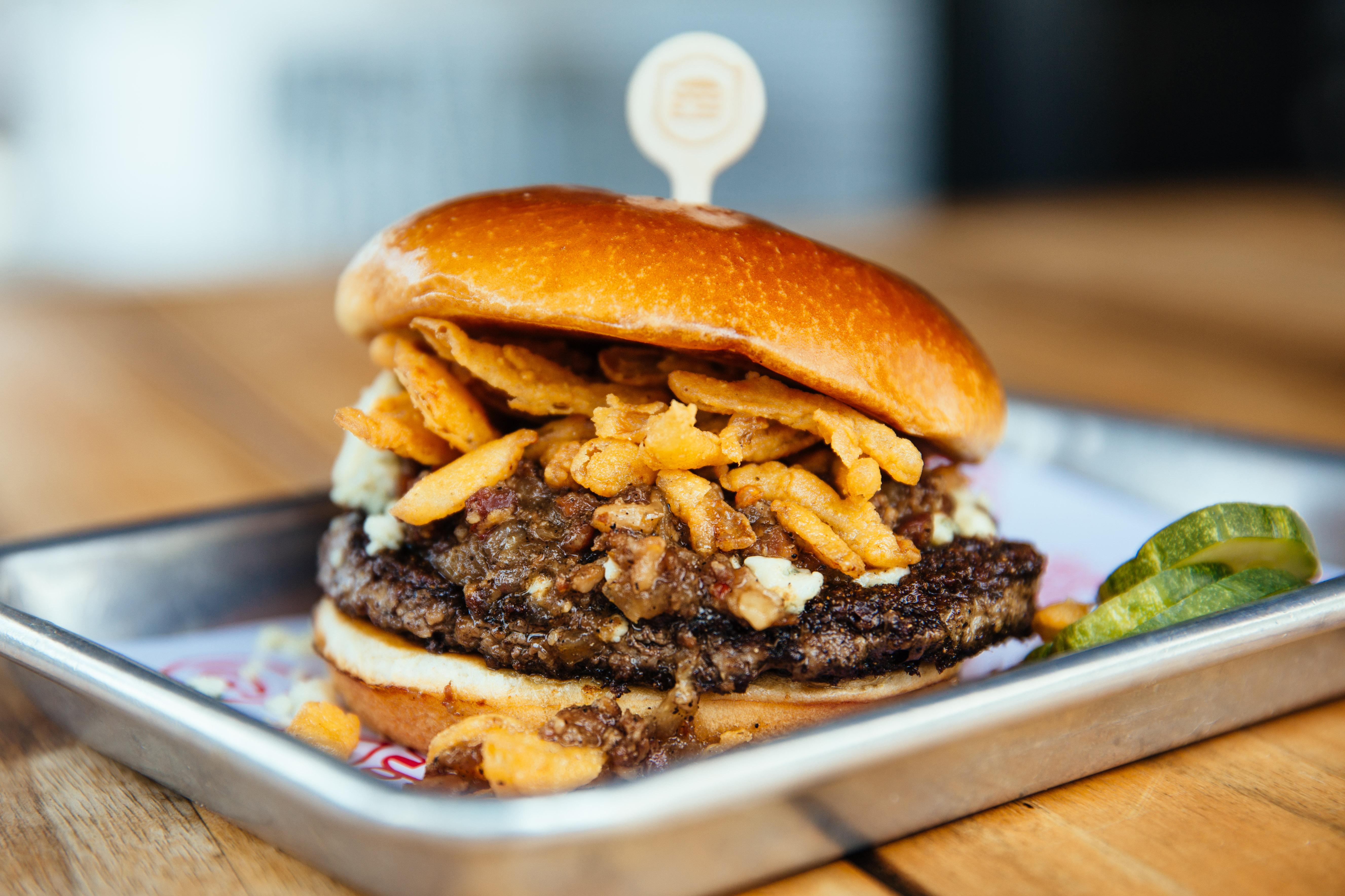 Brian 3.0 may sound like the name of a cartoon robot, but it’s actually the name of a burger at Curbside Burgers with pork-belly preserves, topped with gorgonzola cheese and fried onion strings.