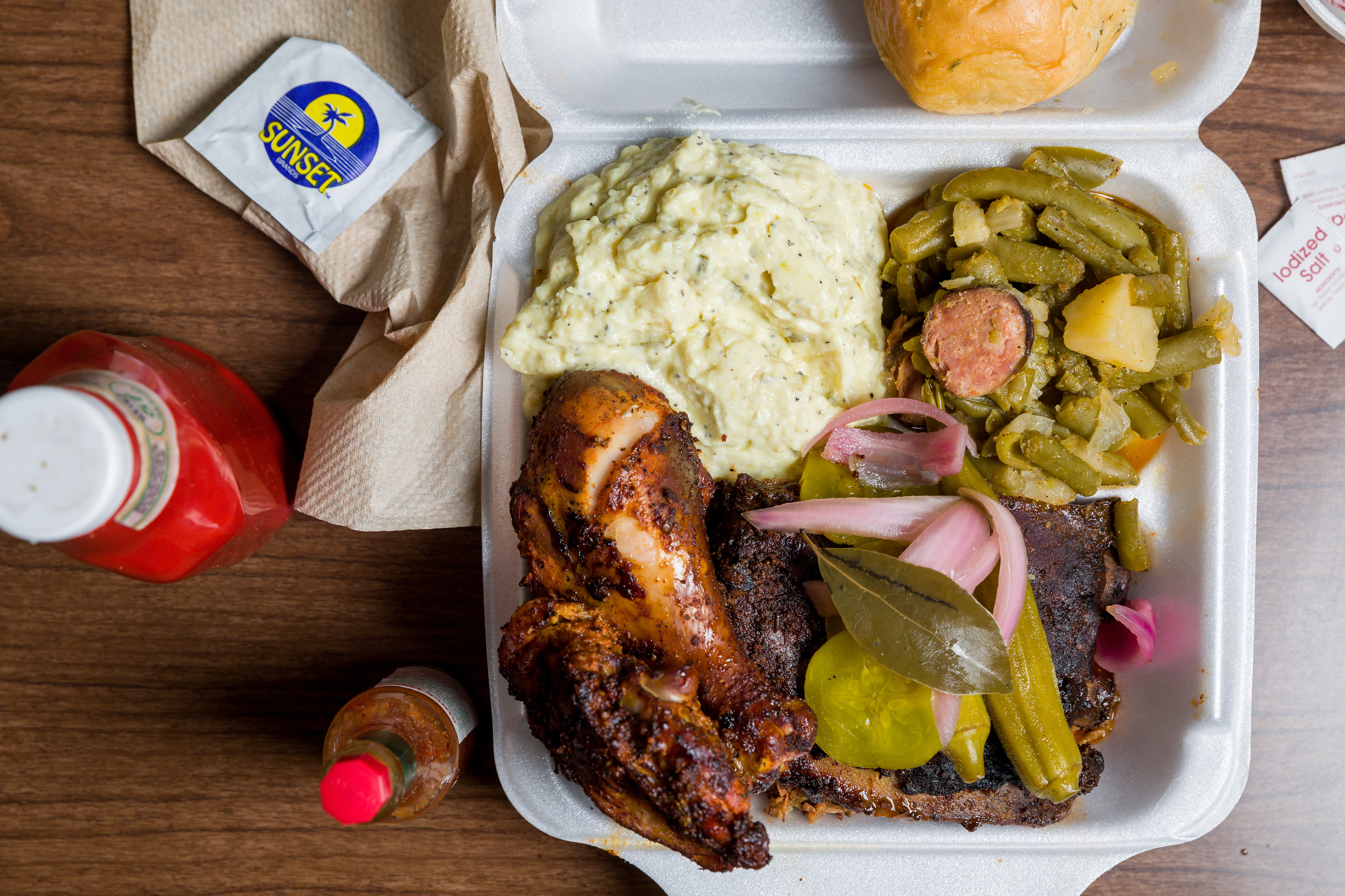 The straightforward menu features several platters of varying sizes depending on your appetite. Don’t miss the opportunity to pile on several meats at once, such as the tender pork ribs or 12-hour smoked brisket. Substantial sides like green beans stewed down with sausage and potatoes mean you won’t leave hungry.
