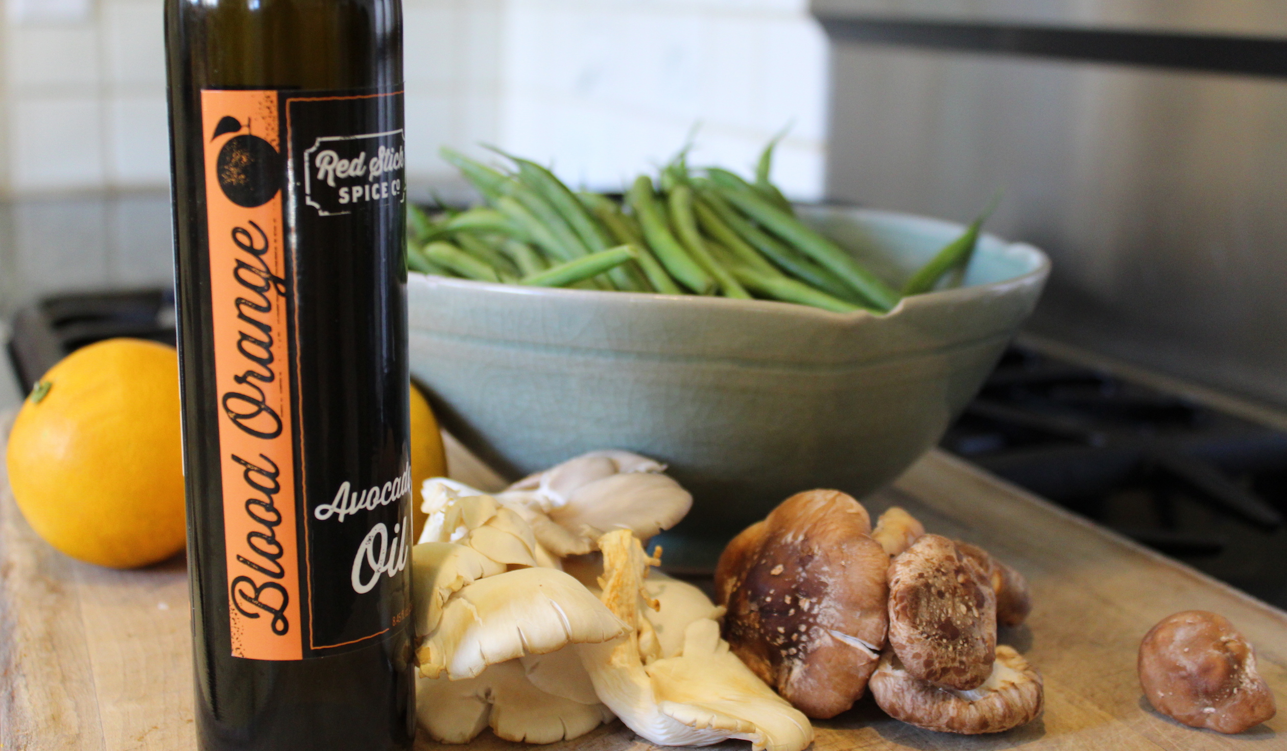 This was a tip I picked up recently from a chef friend, inspiring me to source a bottle of blood orange avocado oil from Red Stick Spice Co. It’s incredibly flavorful and is the perfect ingredient for finishing sautéed green beans with fresh mushrooms from another local favorite: Mushroom Maggie’s Farm. That’s the way I like to serve them for Thanksgiving.