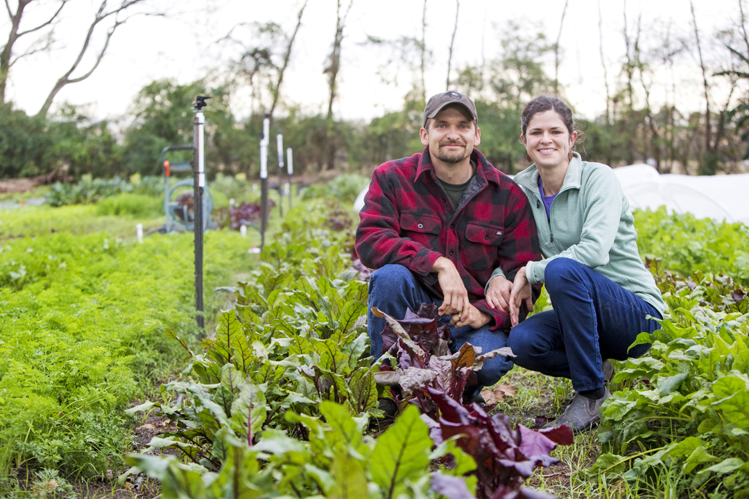 The modest plot of crops on the old Longwood Plantation property—a half-acre oasis in a clearing away from all the nearby urban sprawl—is managed by young couple Grant and Allison Guidroz.