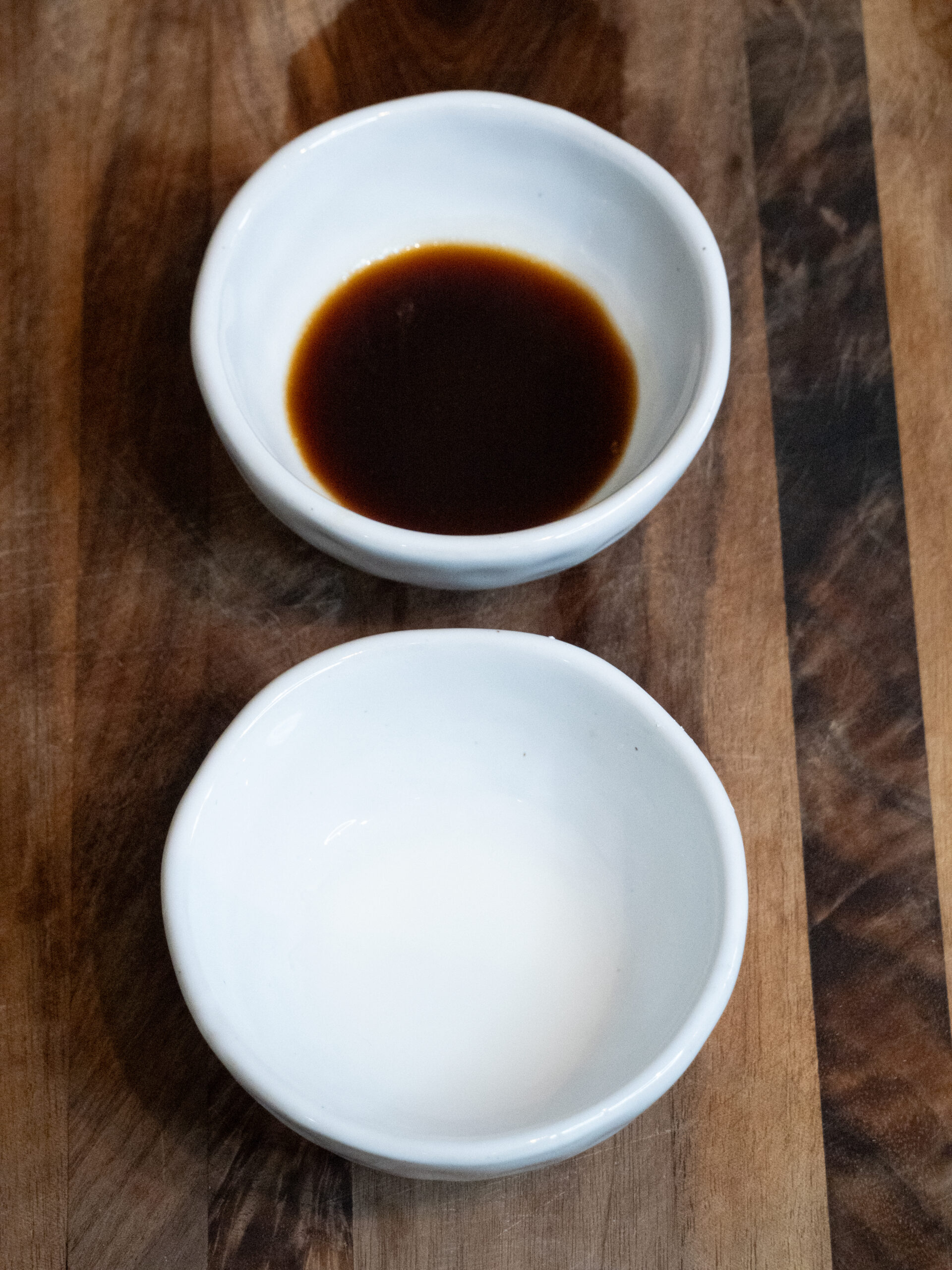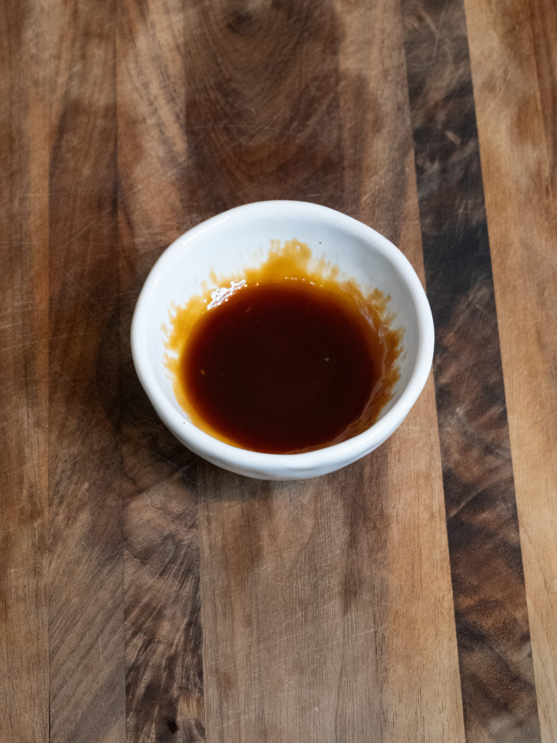 3. Meanwhile, mix together the cornstarch and water to make a slurry. Combine the slurry with the leftover marinade. Microwave the mixture for 15 seconds at a time and mix in between until it’s a thickened glaze, about 30-45 seconds. Allow the glaze to cool for at least 5 minutes.