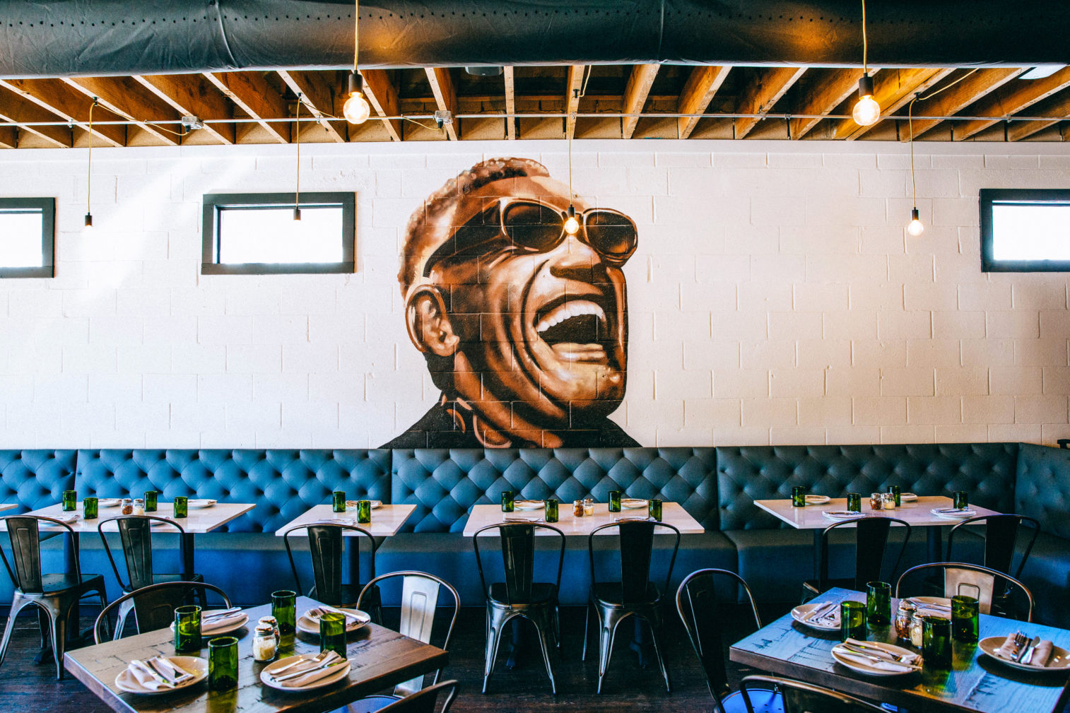 Ever since, I’ve been making mental notes of my favorite local design details: Curbside Burgers’ giant red marquee light. Superior Grill Highland’s Mexican equipale chairs. Rocca Pizzeria’s tufted seating and larger-than-life Ray Charles mural. Magpie Cafe downtown’s geometric-tiled bar. Southfin Southern Poke’s neon sign.