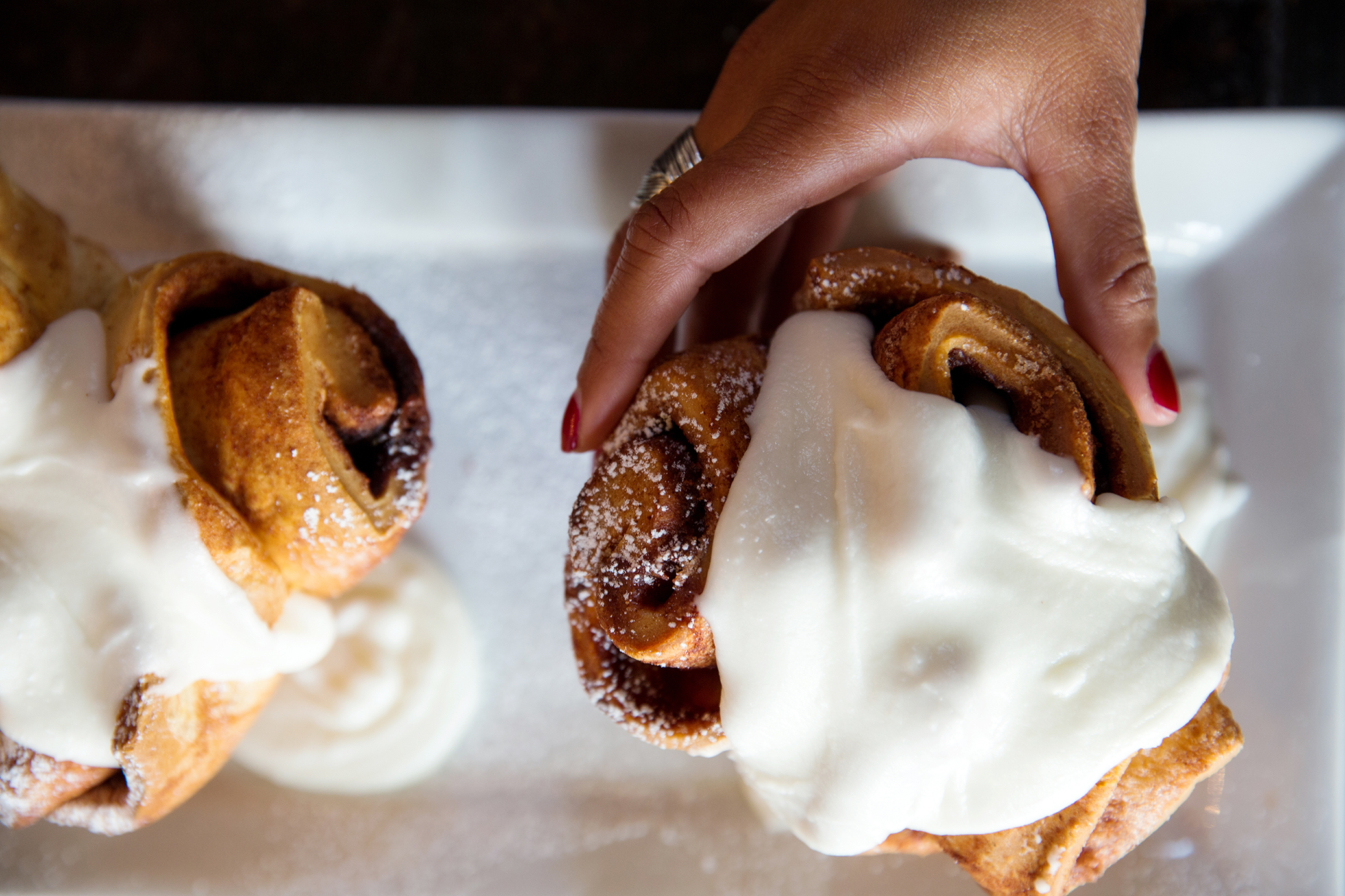 We wanted to illustrate just how big Strand’s Cafe’s cinnamon rolls truly are. Luckily,