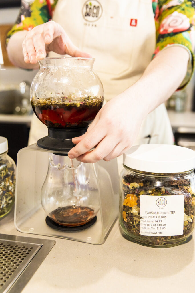 “I didn’t know anything about tea when I bought the shop nine years ago, but I’ve come a long way,” she says. “I remember being intimidated by tea. I just wanted SoGo to be a place that made tea super approachable. What you’re going to get here is more of a coffee shop vibe that is very casual, but you’re also going to get super solid drinks with education about the beverages.”