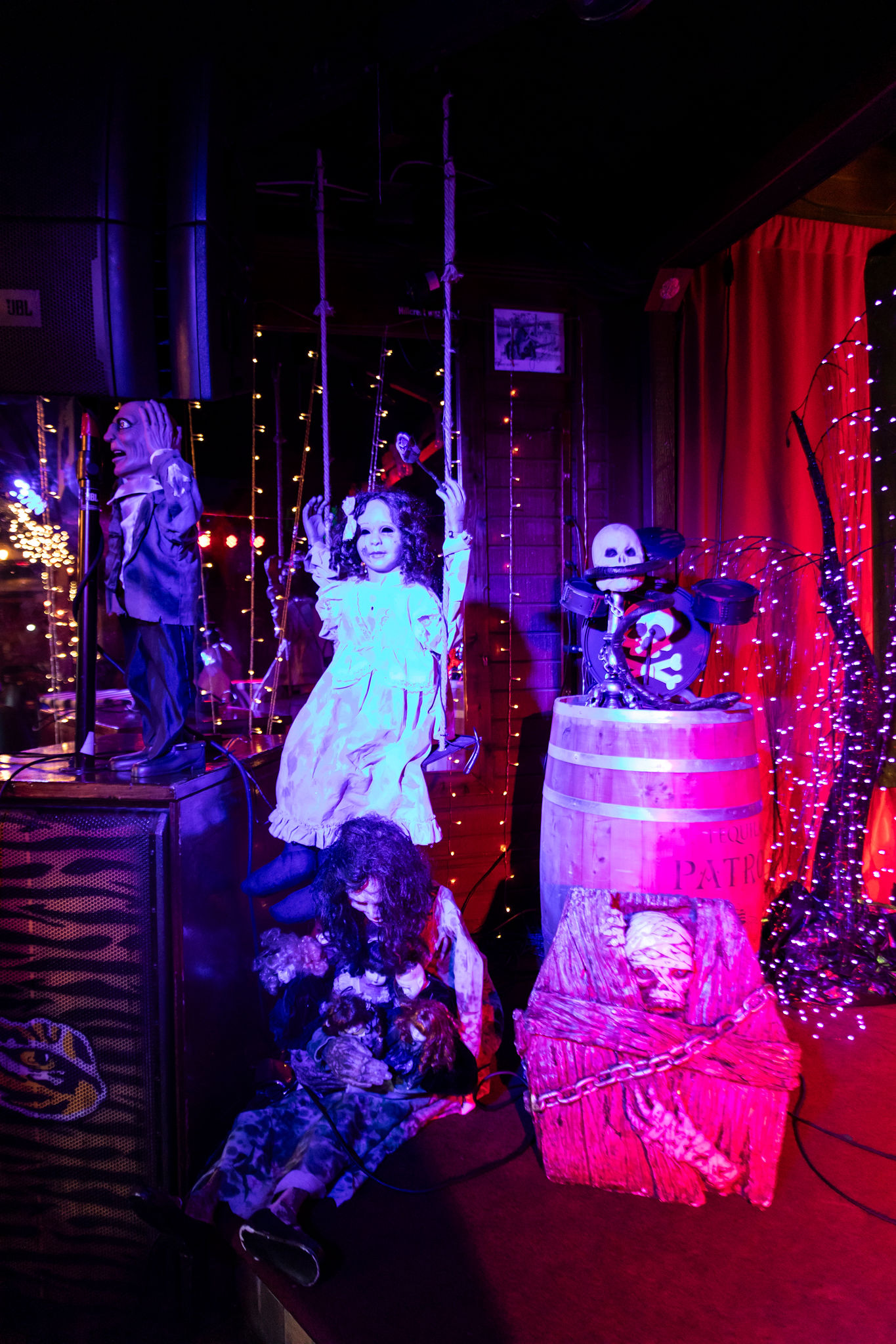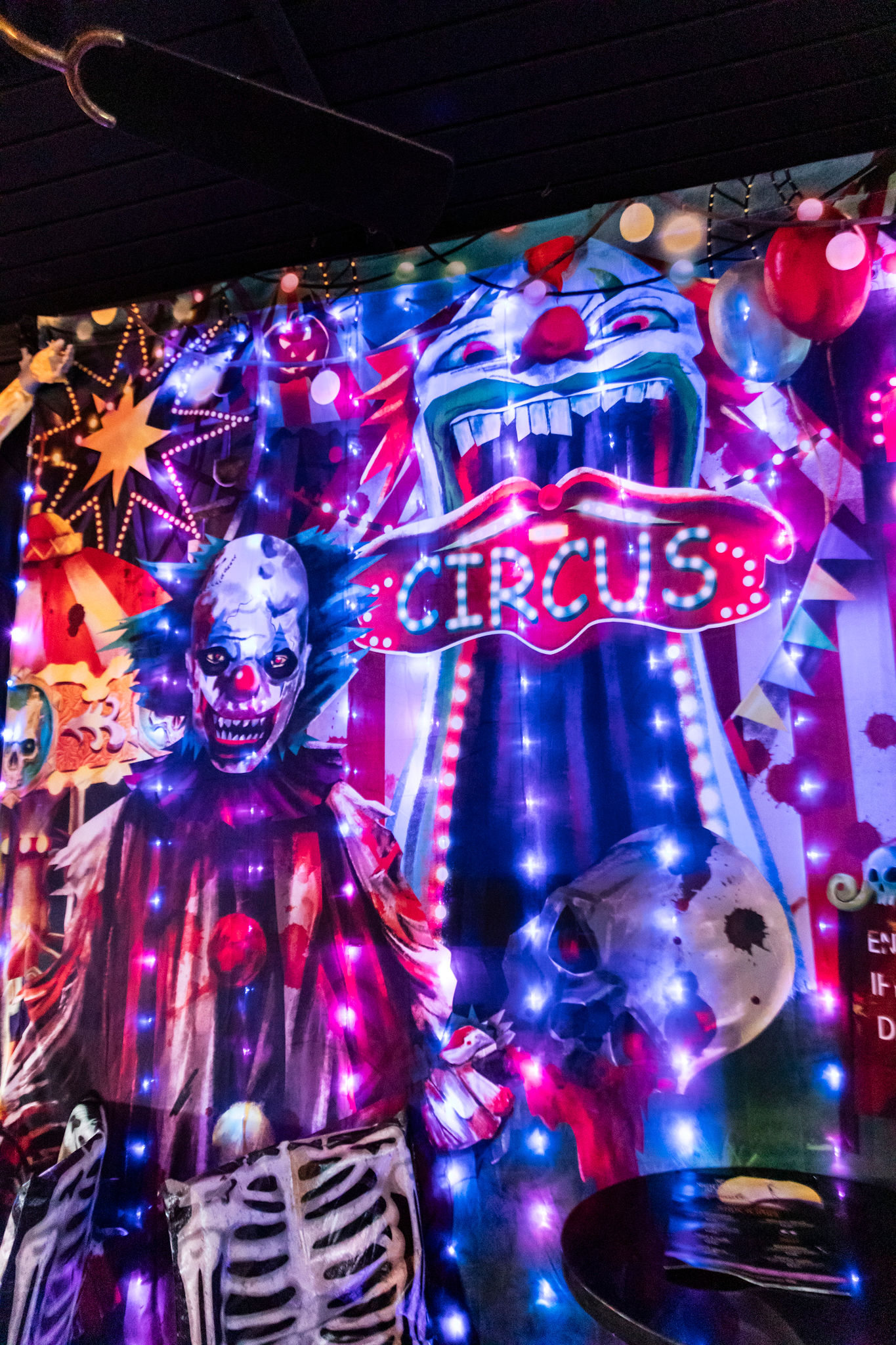 The 5,000-square-foot bar is decked out with decorations straight out of a horror film. Ghastly monsters lurk around every corner of the bar, and each section has its own theme, like a carnival area filled with not-so-friendly clowns and a Nightmare Before Christmas-themed room complete with a towering Jack Skellington figure that had to have its legs cut down in order to fit in the building.