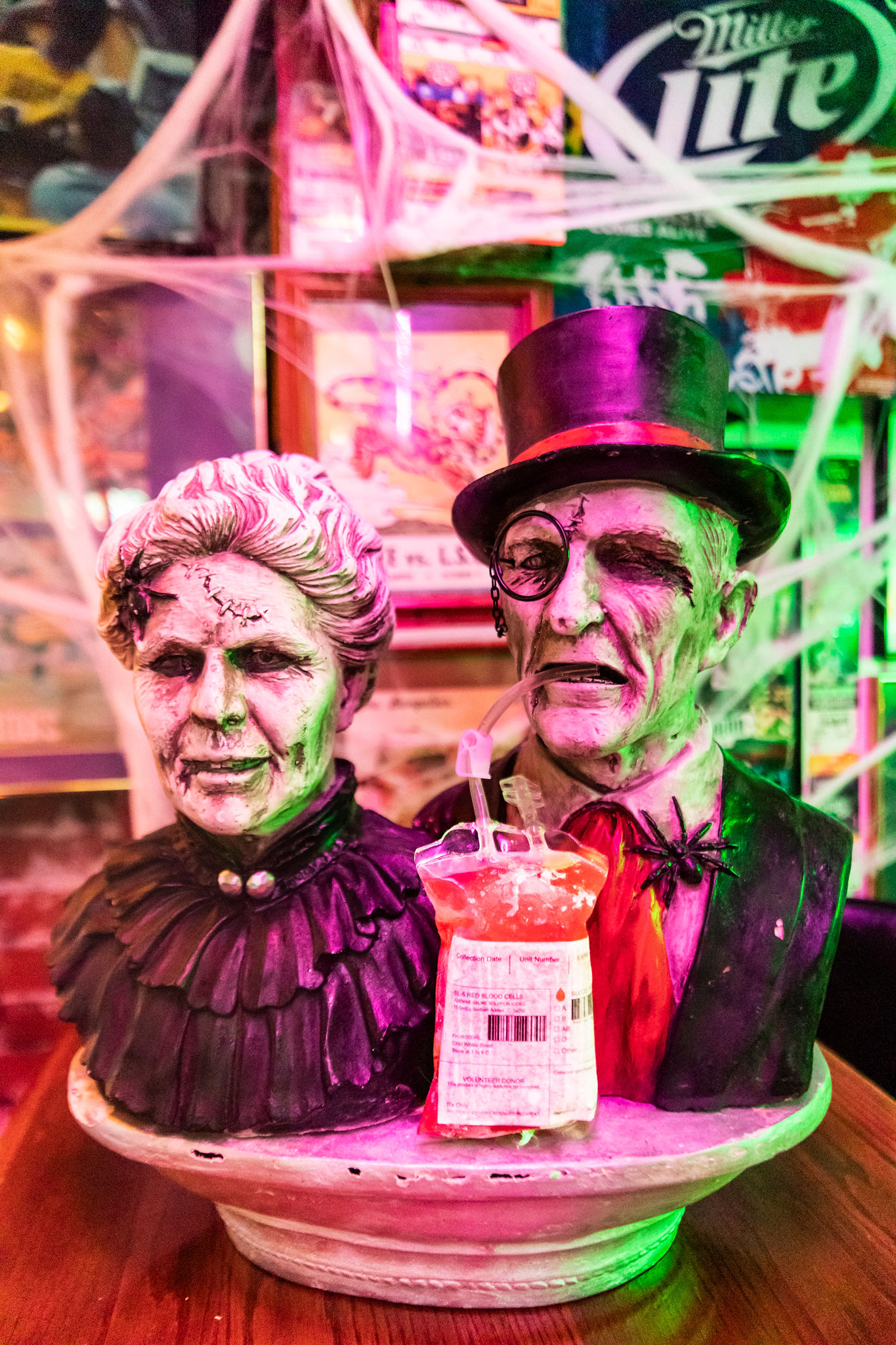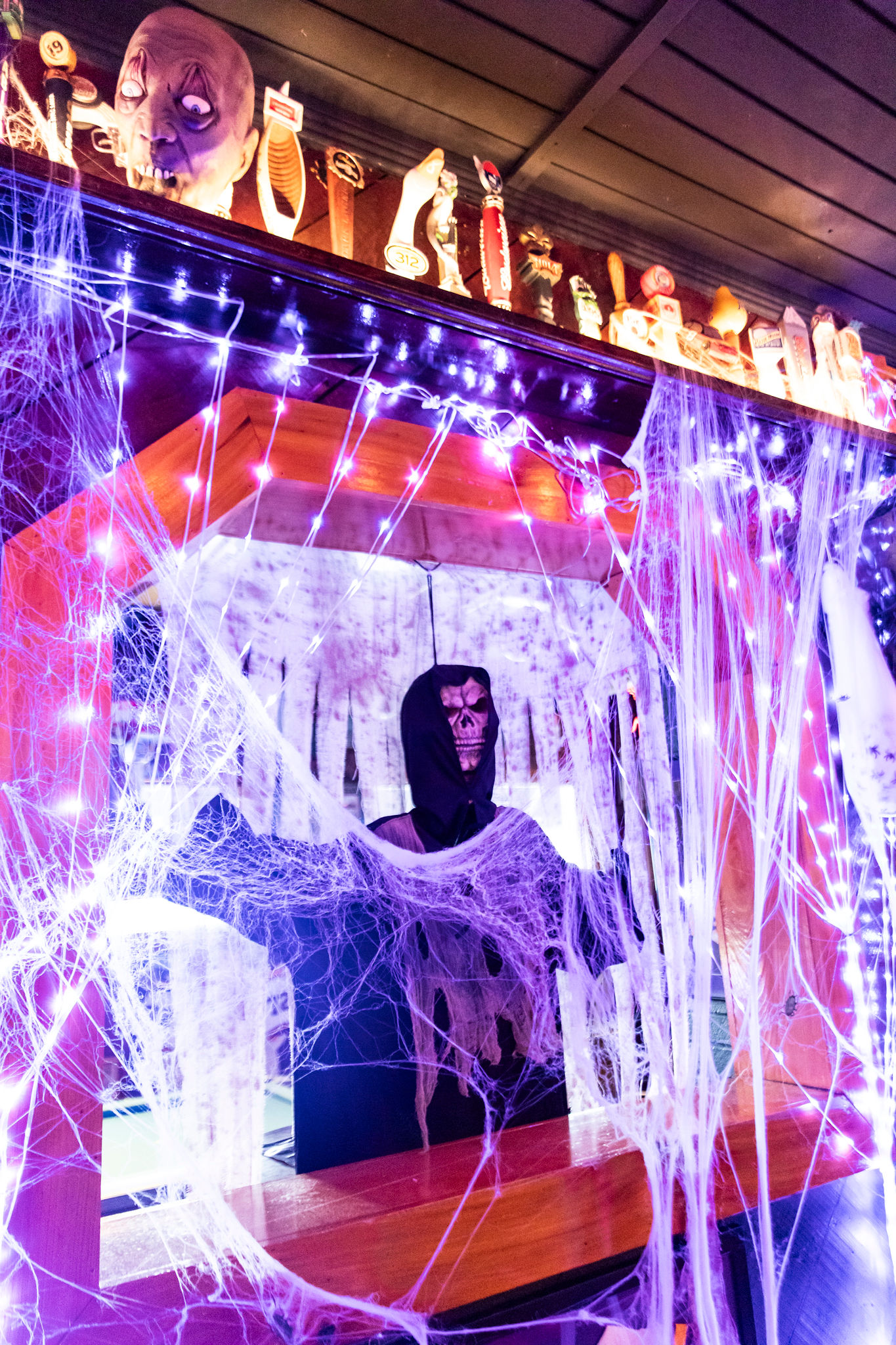 Graham says her husband, Robert, The Station’s owner, loves Halloween—so there is no shortage of spine-tingling decor.