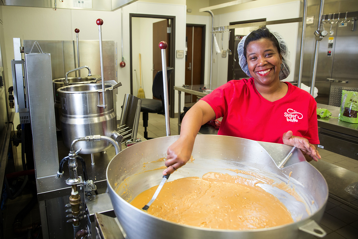 Sugarbelle was born. Since 2015, Coleman has operated out of the LSU AgCenter Food Incubator, where she bakes Monday through Wednesday, preparing orders for Tony’s, Matherne’s and the LSU Dairy Store. Using pure ingredients and still sifting her dry ingredients by hand, she makes individual cake squares in flavors like “Wedding Belle,” red velvet, German chocolate, carrot, lemon, fresh strawberry and the “Southern Sophia,” which resembles Italian cream. She’s also known for her authentic five-ingredient tea cakes, pralines, praline brownies and cream cheese-filled “ooey gooeys.”