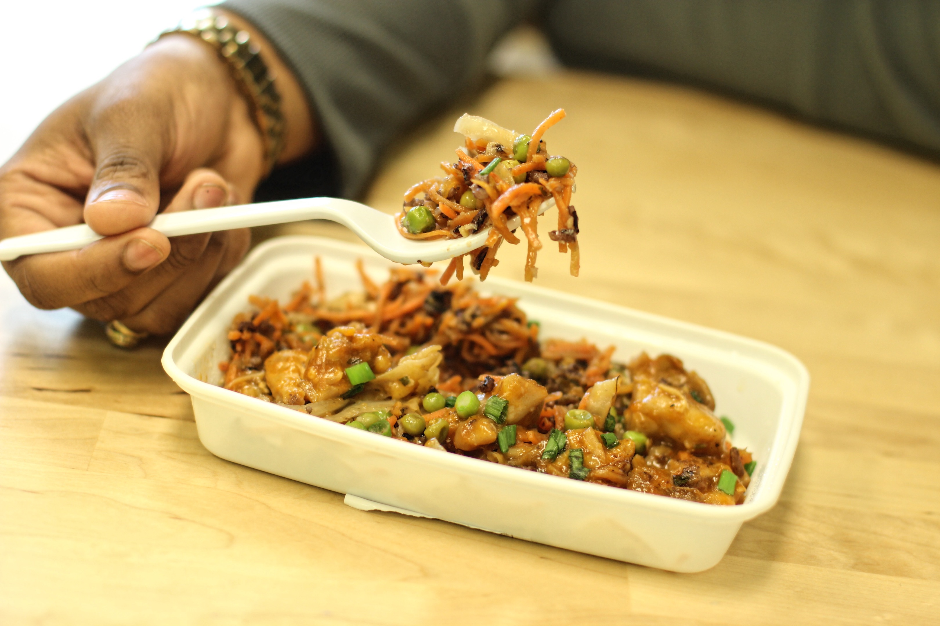 Seeing a menu full of gluten-free options, we decided to try out the Sweet and Sour Chicken at Fresh Kitchen. Glazed with a tangy sweet and sour sauce, the diced chicken pieces, stir-fried vegetables and purple rice are packed with flavor in every bite. The majority of Fresh Kitchen’s dishes are gluten-free and visibly labeled on the menu, making ordering anxiety-free as well. The menu includes everything from cashew pancakes made with coconut flour to Parmesan chicken with gluten-free penne pasta.
