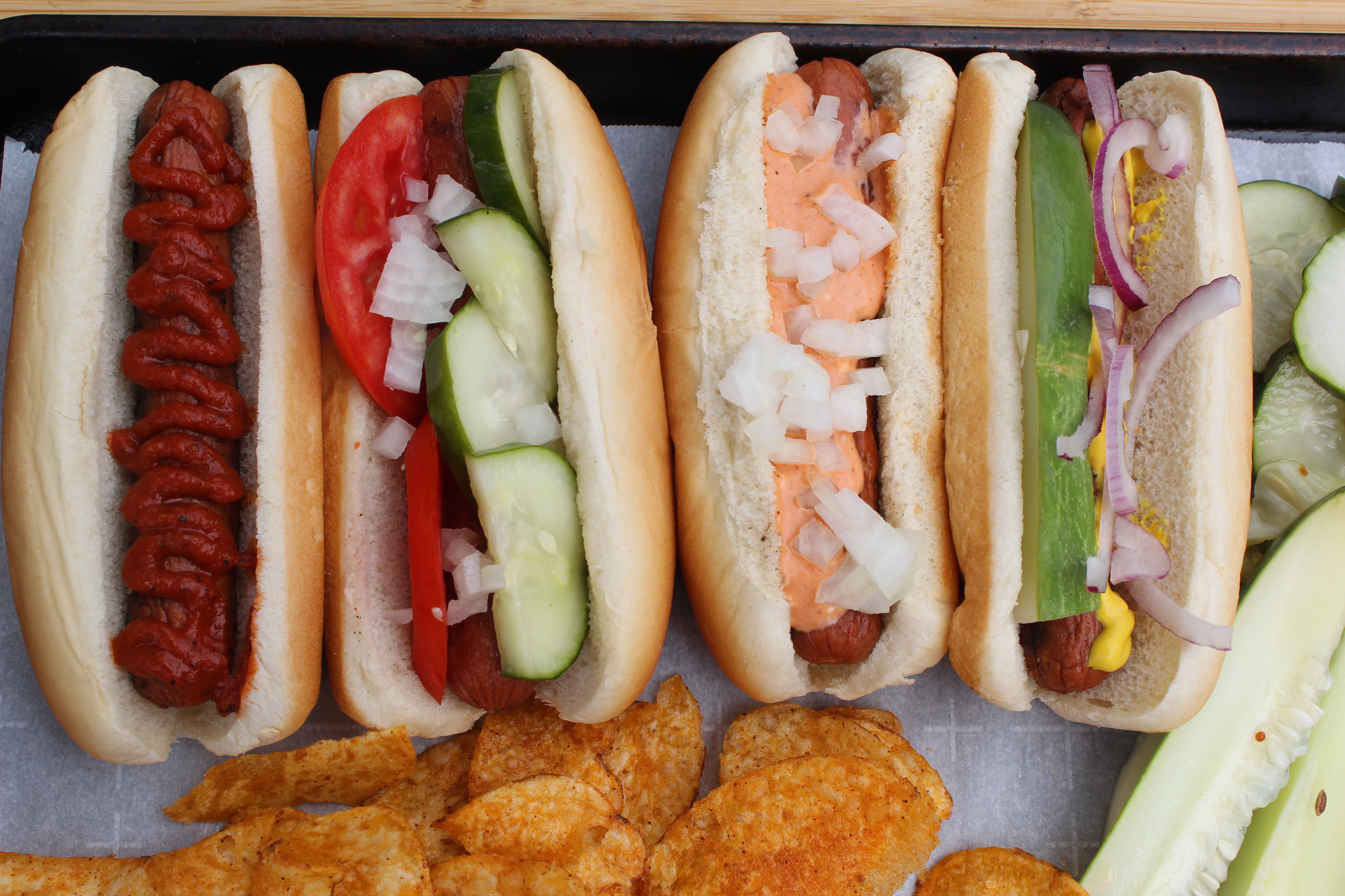 Along with homemade ketchup, special sauce and pickles, enhance the flavor of your grilled hotdogs with freshly chopped or slivered onion, sliced jalapeños and sliced fresh summer tomatoes.